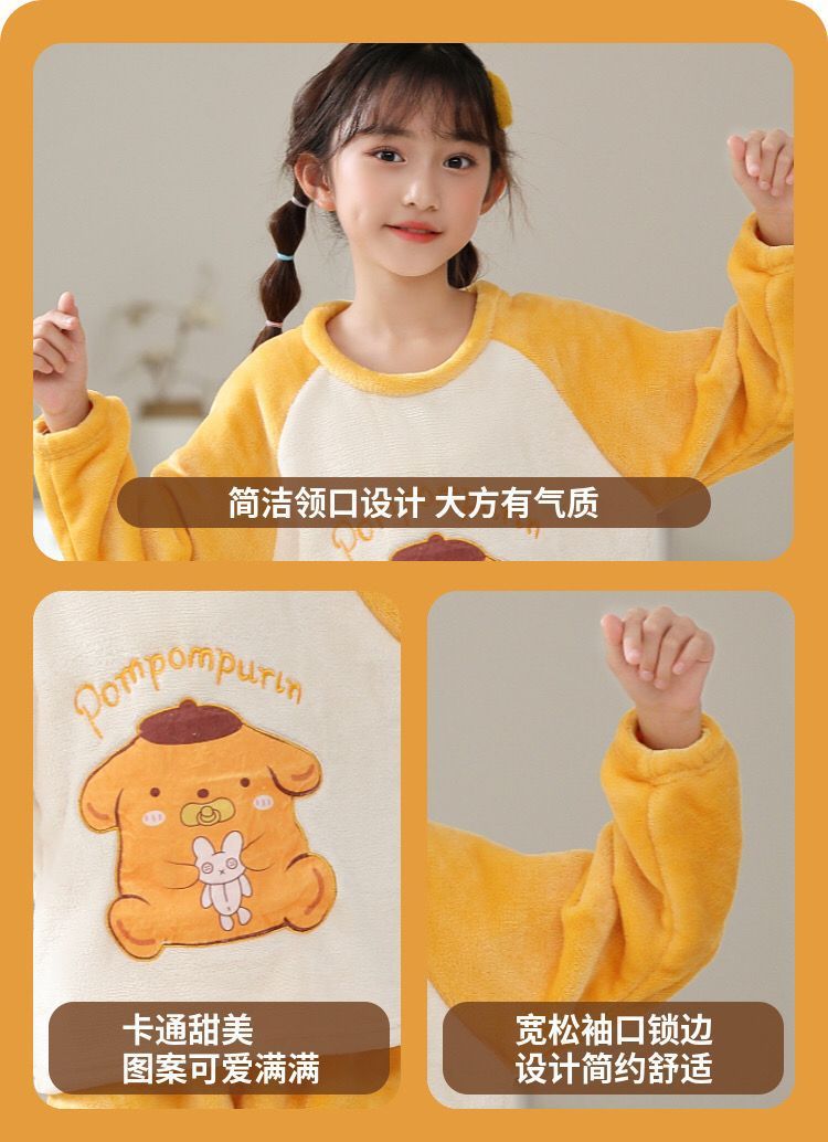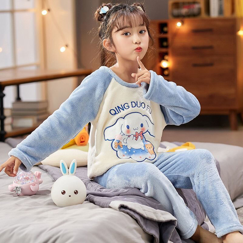 가을과 겨울 어린이 잠옷 여성 플란넬 만화 귀여운 어린 소녀 아기 산호 양털 홈 의류 세트