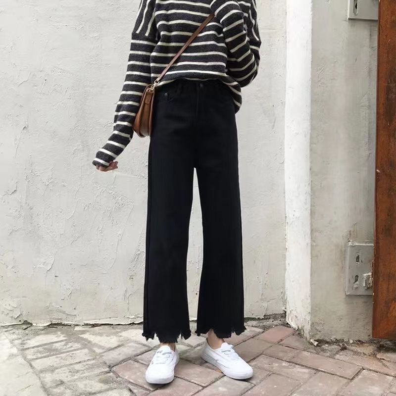 작은 미국 스타일 레트로 화이트 스트레이트 청바지 여성의 높은 허리 느슨한 슬림 슬림 넓은 다리 유행 유행 바지스토어 가기