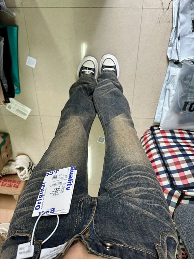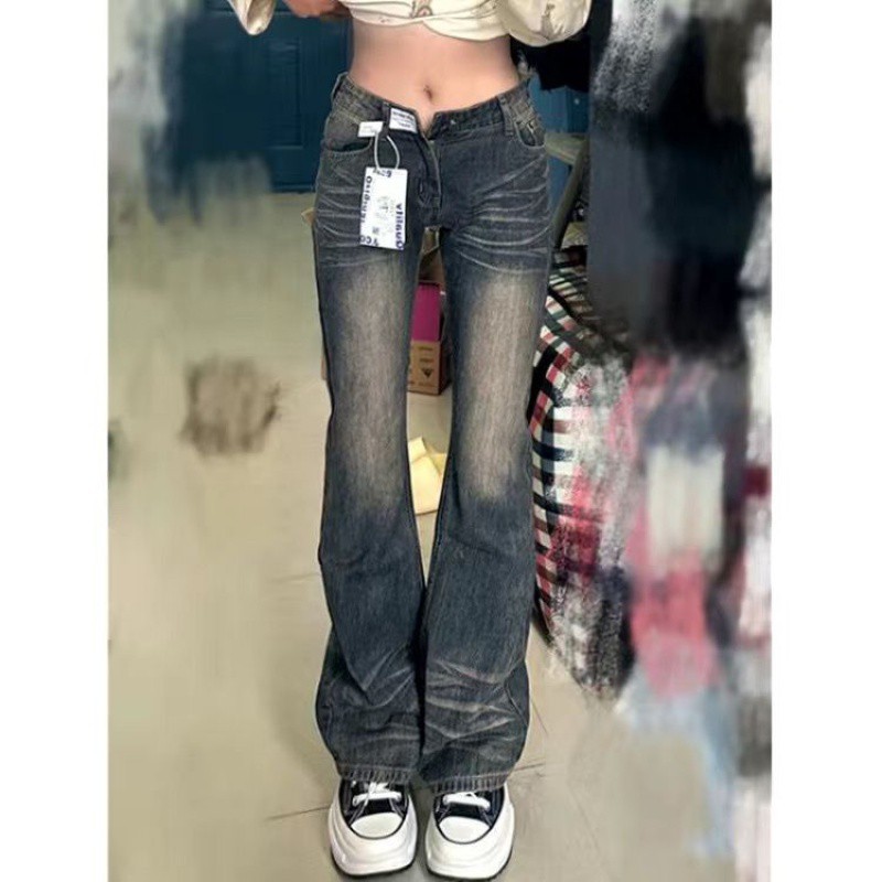 빈티지 아메리칸 스타일 스파이스 걸스 지속 마이크로 램 청바지 여성 가을 및 겨울 새로운 높은 허리 슬리밍 슬림-피트 트레일 트럼펫 바지스토어 가기