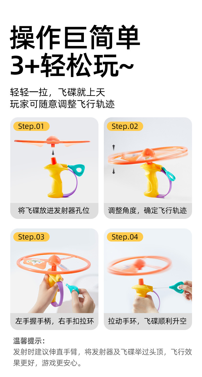 중더 중대 방출 UFO 대나무 잠자리 어린이 야외 당기기 만화 최고 비행 부모-어린이 스포츠 장난감스토어 가기