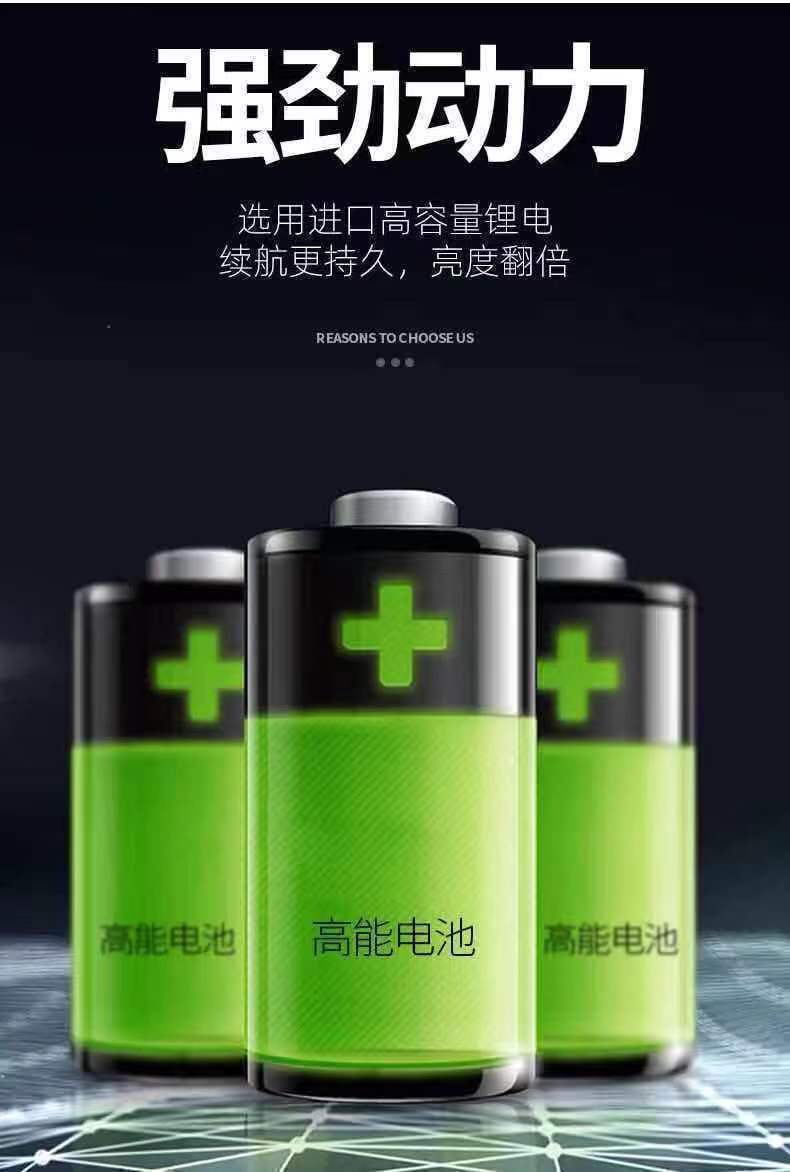 14.产品功能:1.白光-弱光-强光-爆闪-慢闪15.流明:低亮190LM 高亮390LM