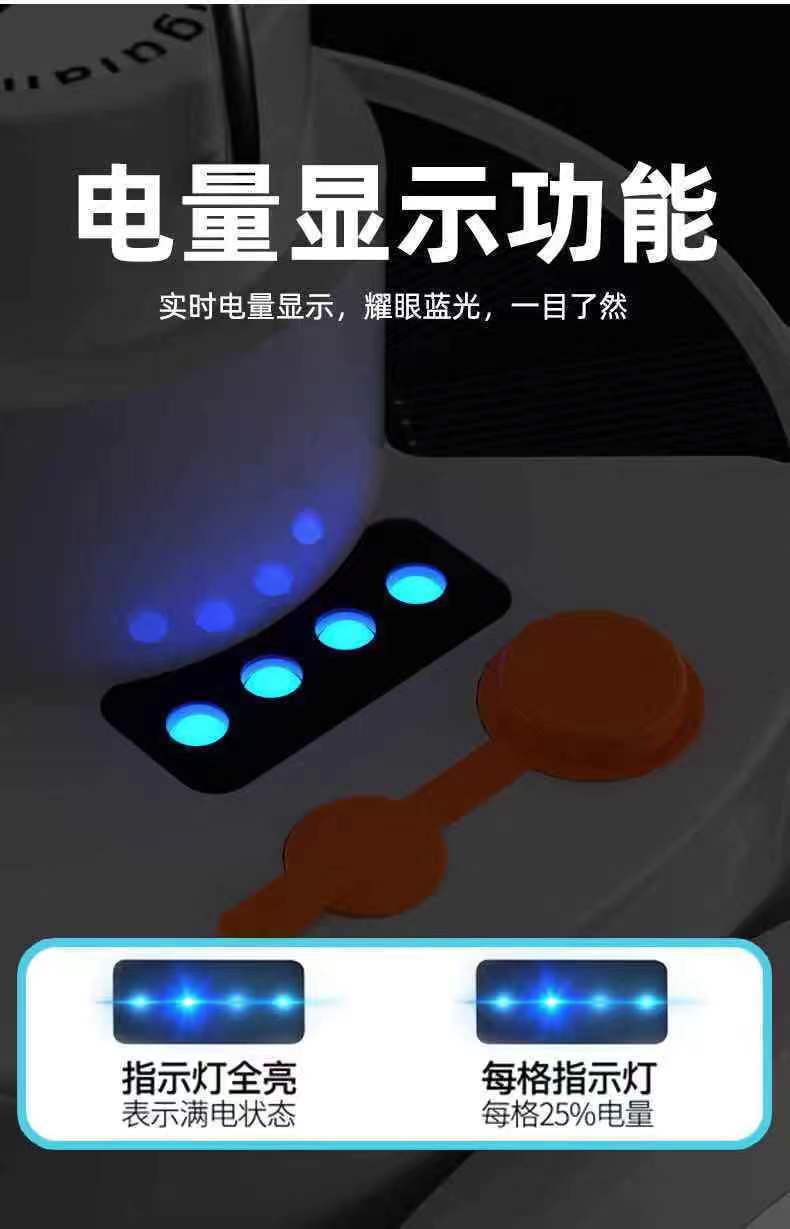 12.适配器:输入电池100-250V/50-60HZ 输出电压:4.2V±0.5V DC500mah 13.照射范围:60㎡