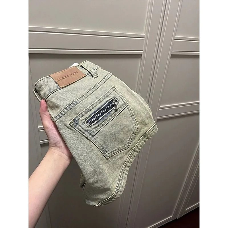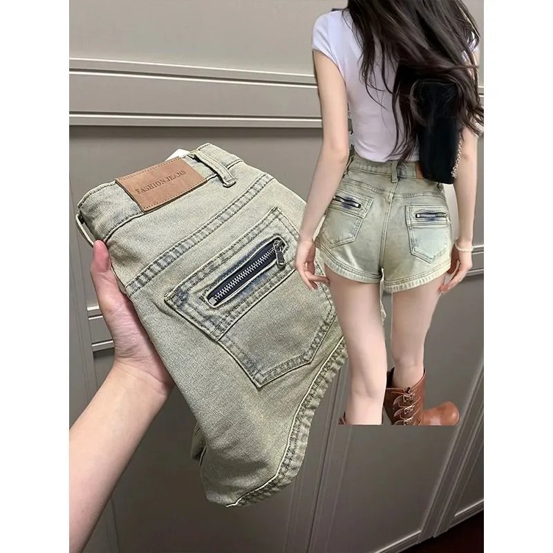 타이트한 슬림 스파이스 소녀 아메리칸 스타일 레트로 청바지 여성 여름 디자인 센스 A-워드 베이스 아우터 엉덩이 핫 팬츠 착용