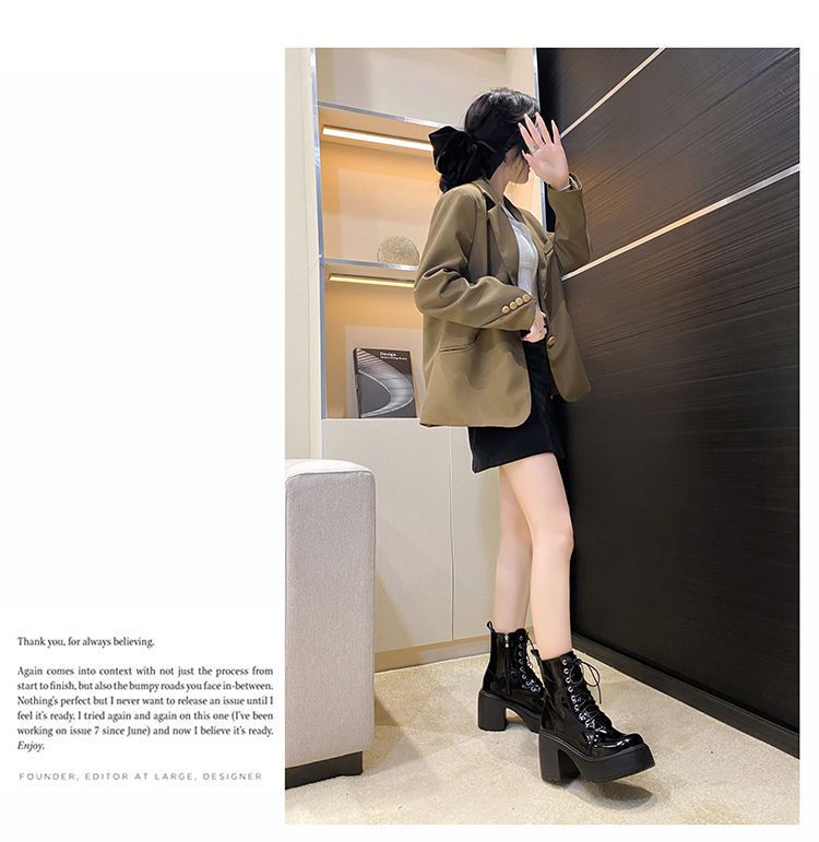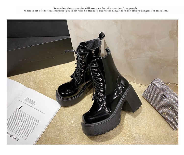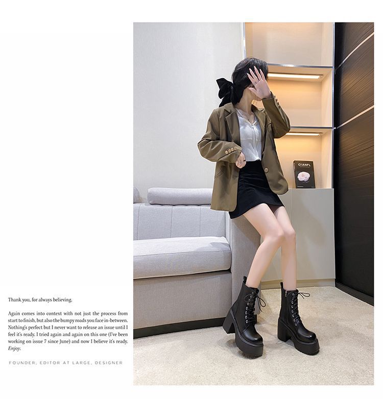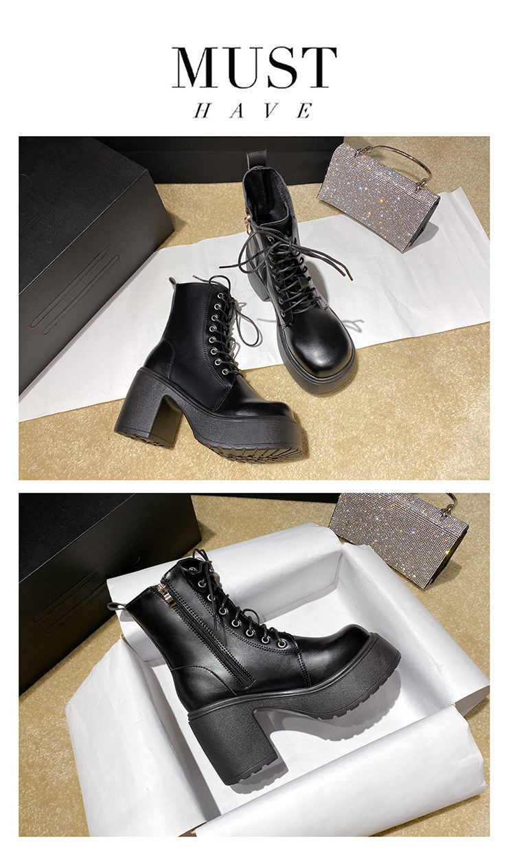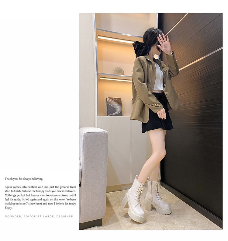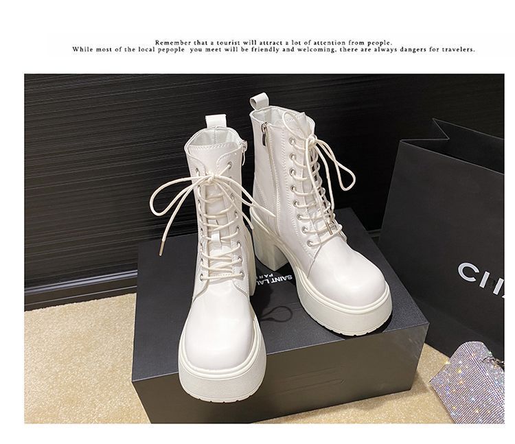 둥근 발가락 두꺼운 힐 레이스 업 마틴 부츠 여성용 하이힐 플랫폼 두꺼운 바닥 짧은 부츠 쁘띠 빈티지 화이트 소프트 가죽 부츠스토어 가기