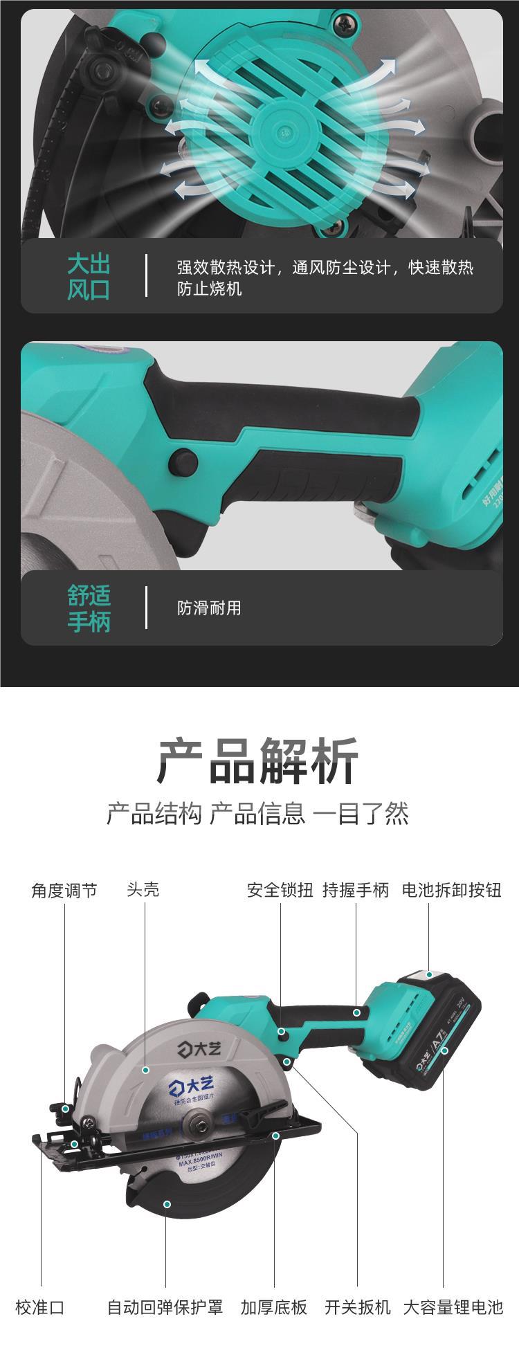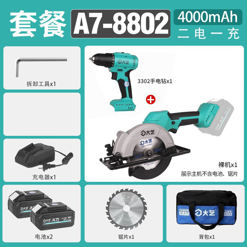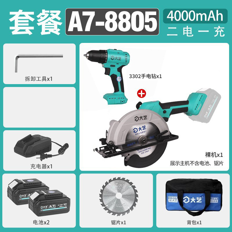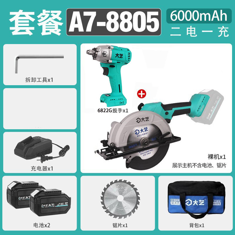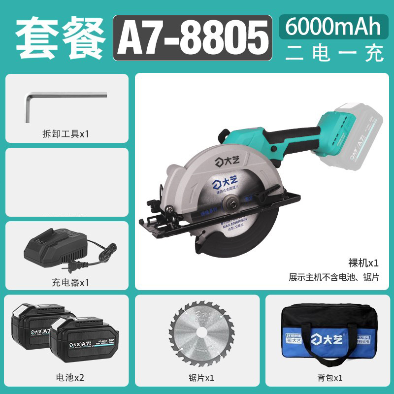 Dayi 충전식 전기 톱 5/6 "브러시리스 리튬 배터리 충전식 절단기 A7-8802 휴대용 전기 원형 톱 8805