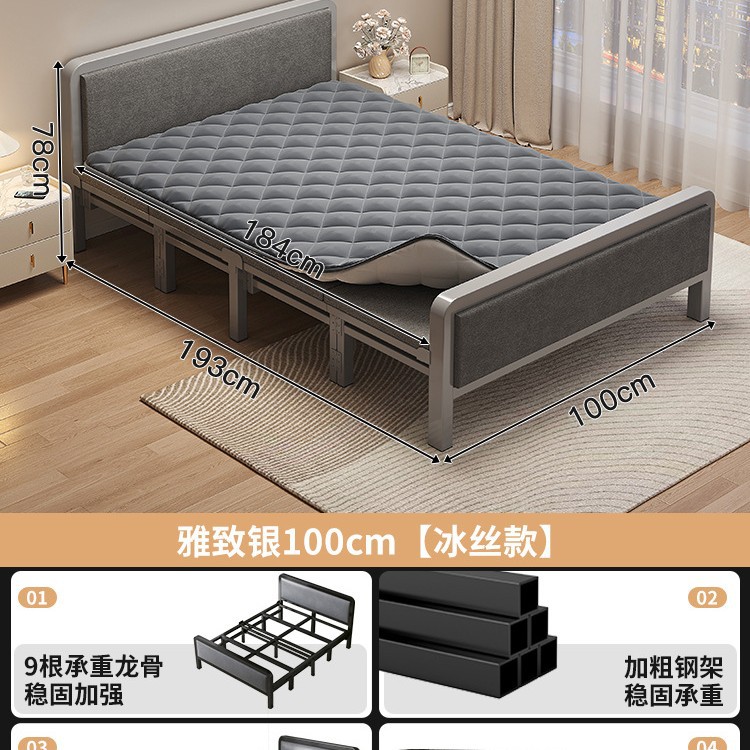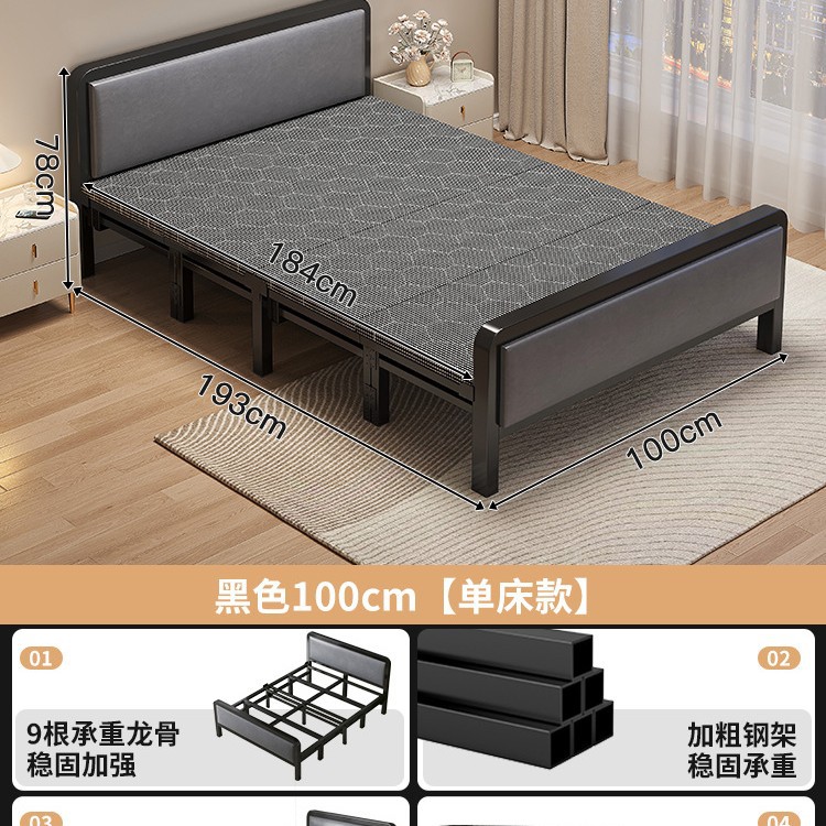 접이식 침대 싱글 침대 가구 성인 1 m 2 간단한 침대 임대 룸 기숙사 강화 하드 플레이트 아이언 침대 더블 침대
