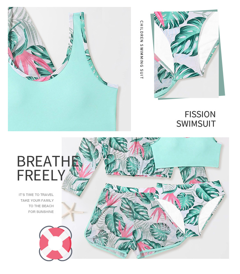 2025년 신상 여아 수영복 4종 세트 긴팔 분리형 중대형 아동 해외 무역 반바지 자켓 수영복스토어 가기