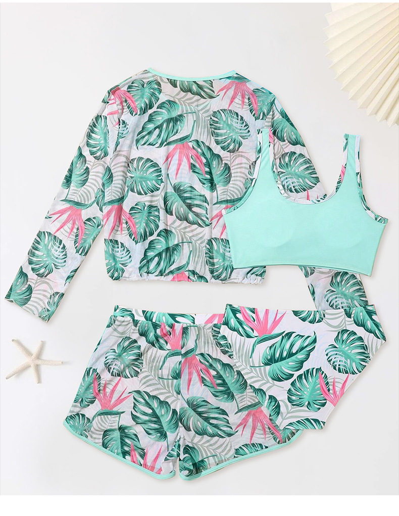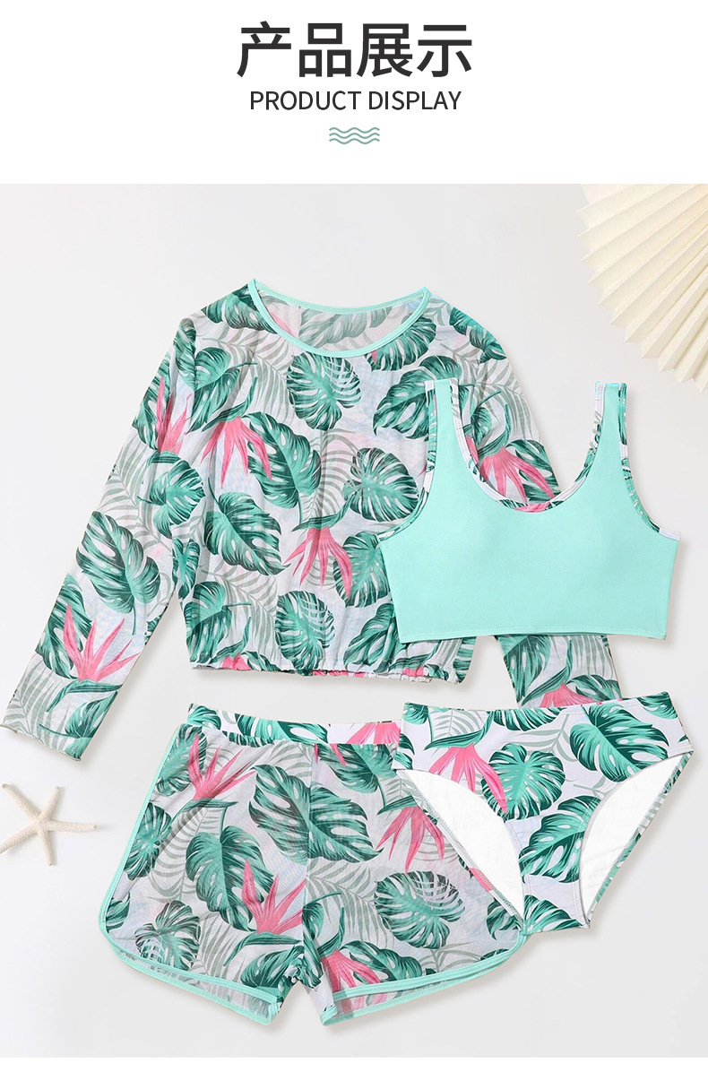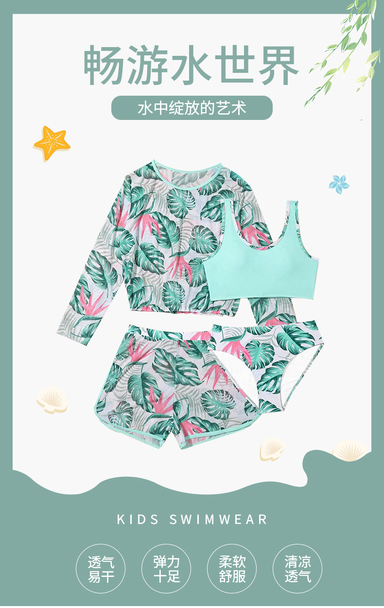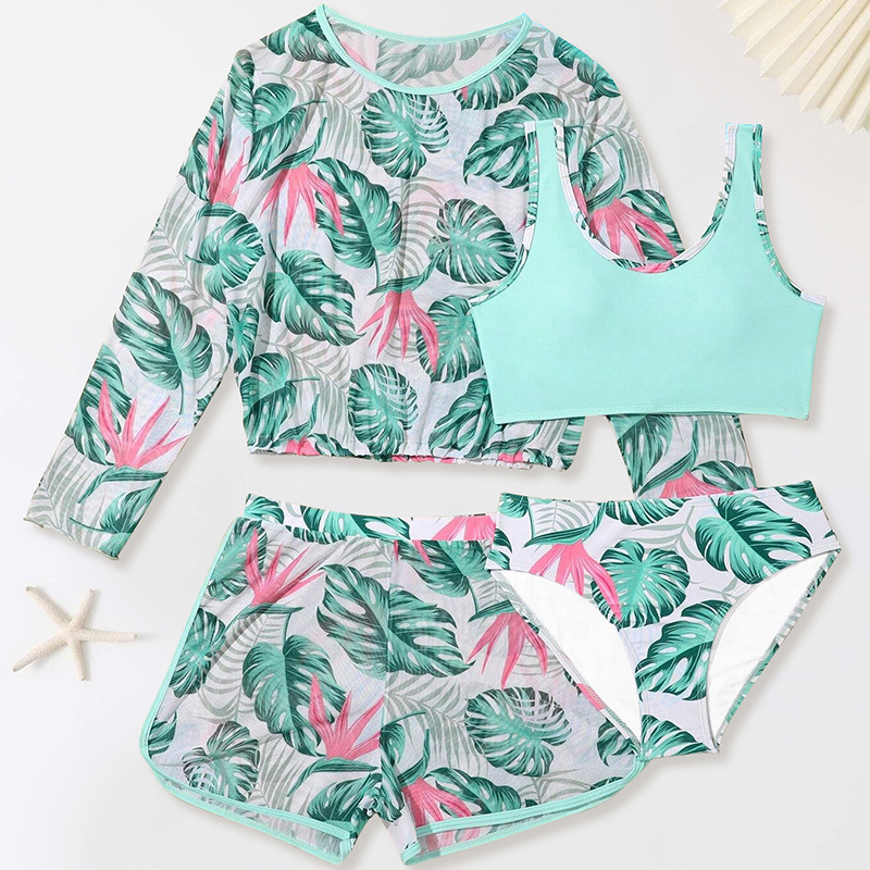 2025년 신상 여아 수영복 4종 세트 긴팔 분리형 중대형 아동 해외 무역 반바지 자켓 수영복