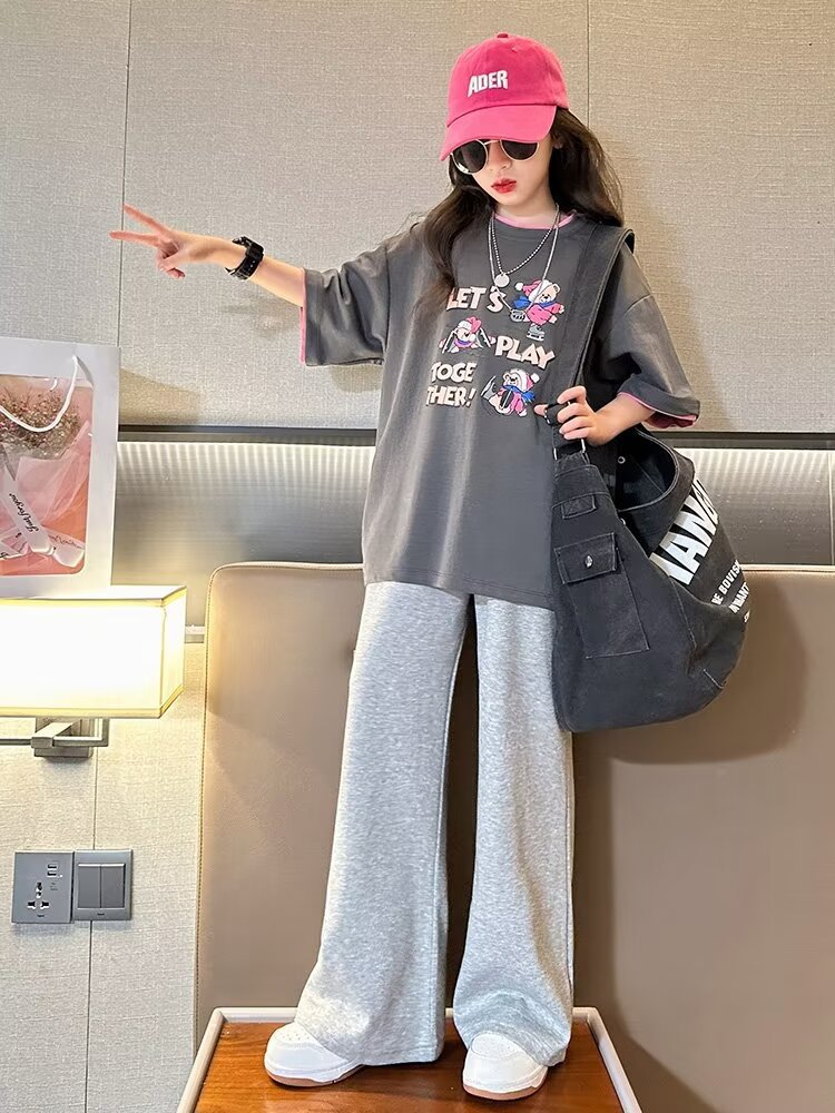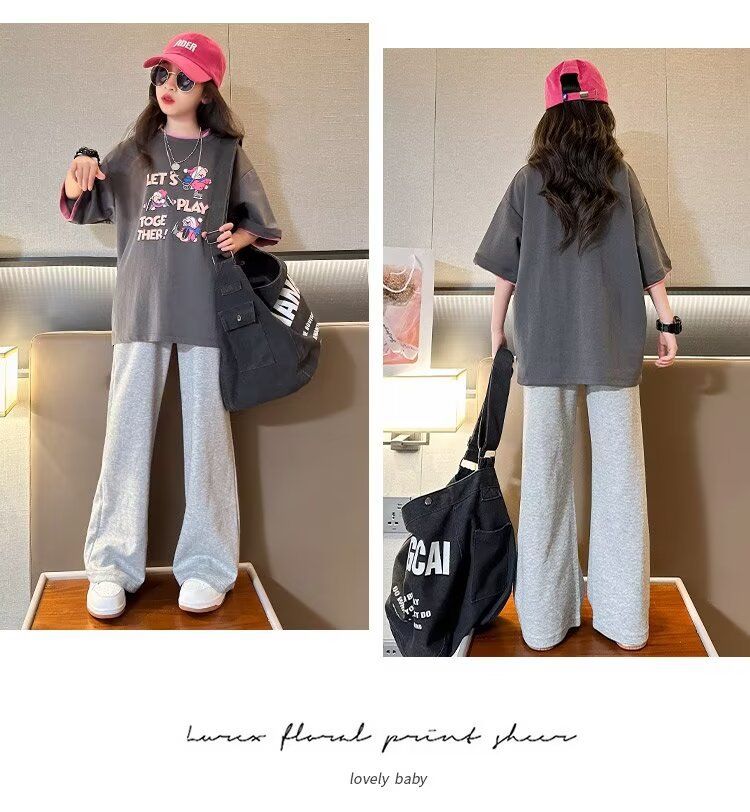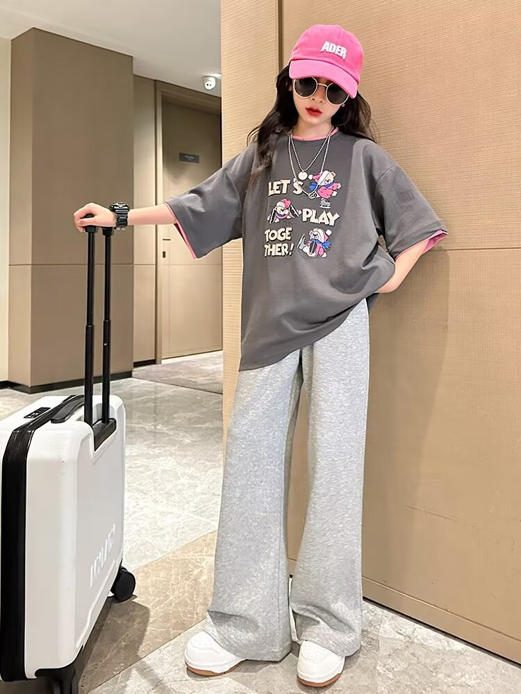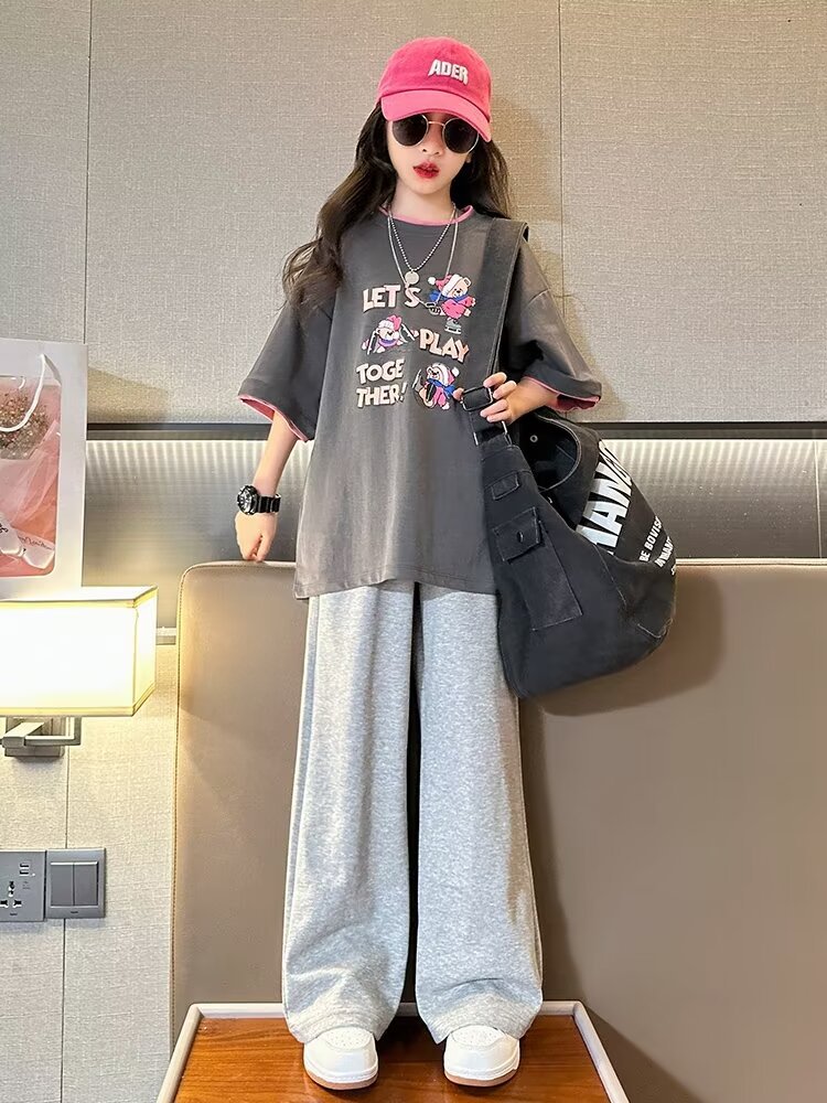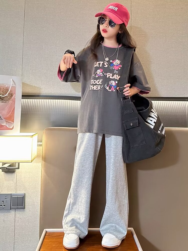 소녀 스포츠 세트 2024 새로운 어린이 캐주얼 아동복 여름 옷 큰 아이 소녀 서양식 여름 유행 옷스토어 가기