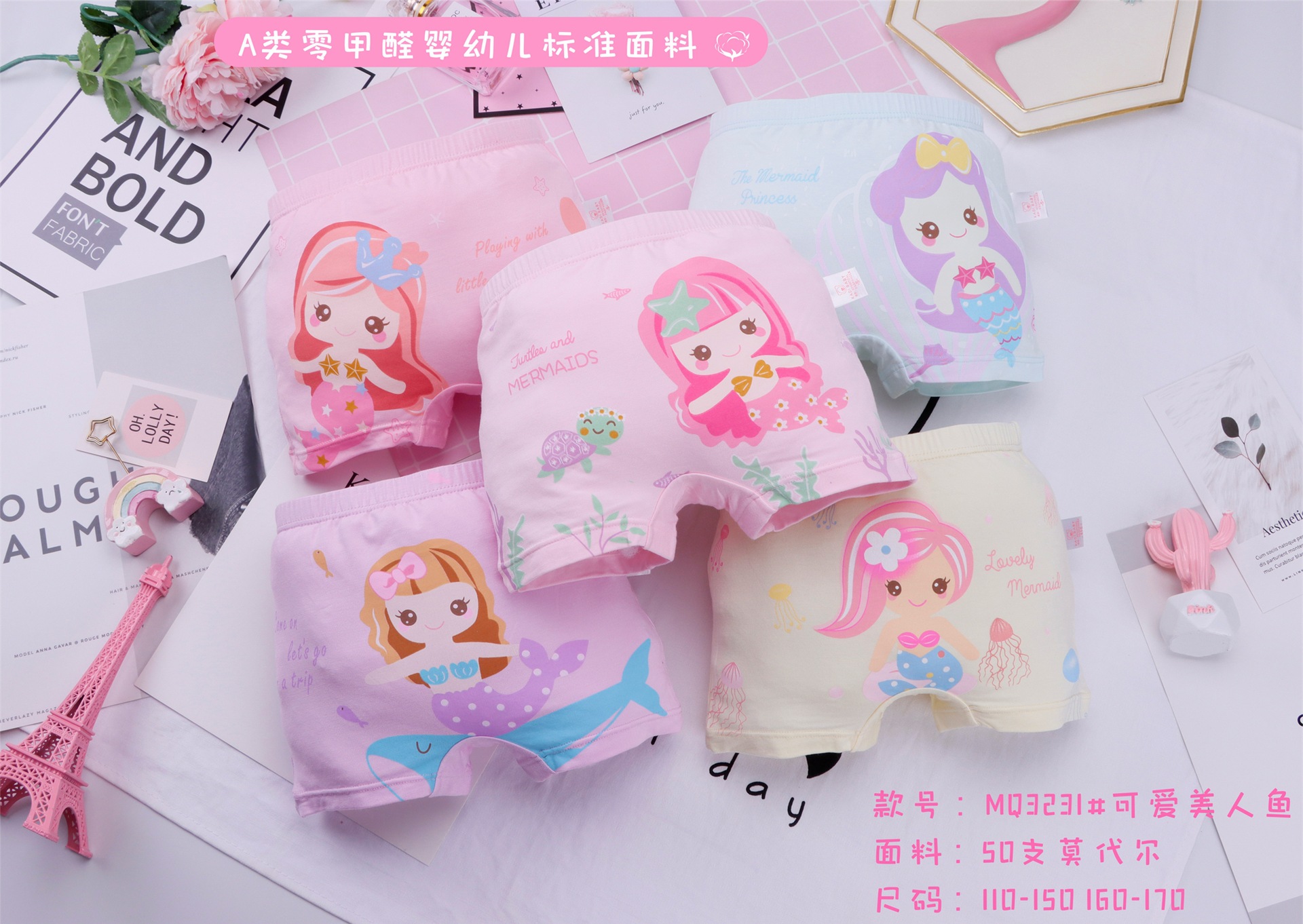 공장 인어 공주 모달 만화 소녀 여성 복서 반바지 팬티스토어 가기