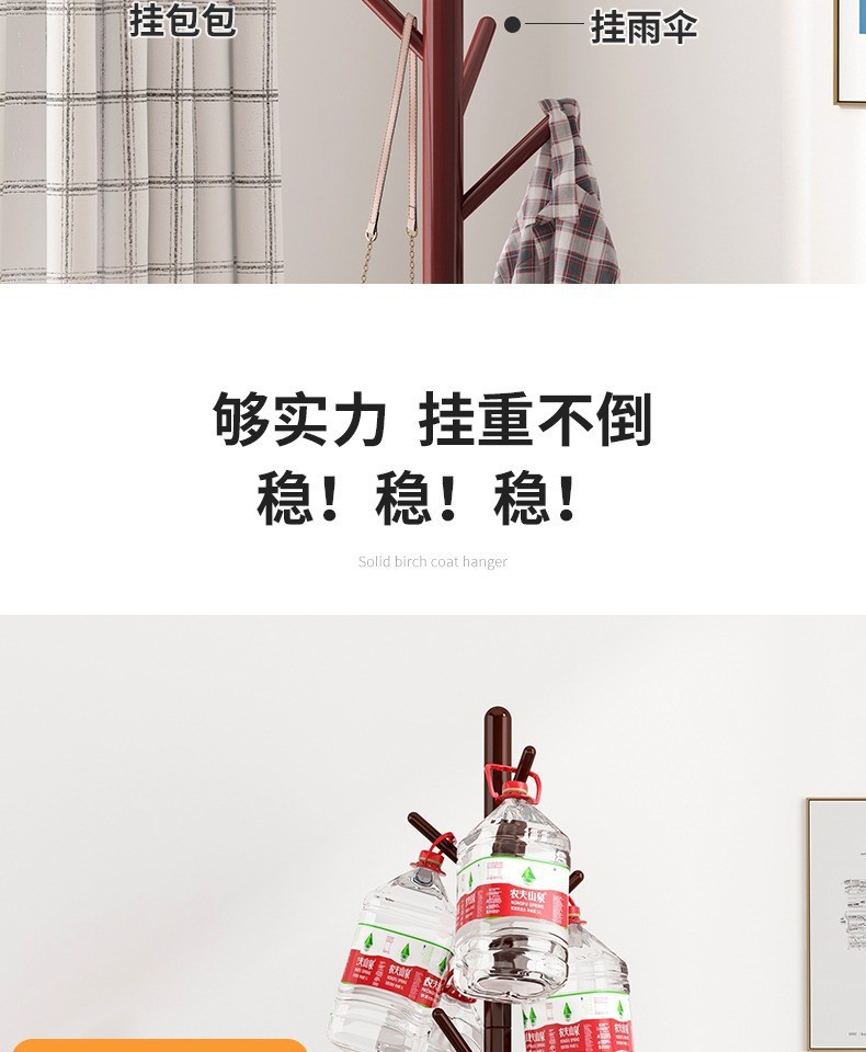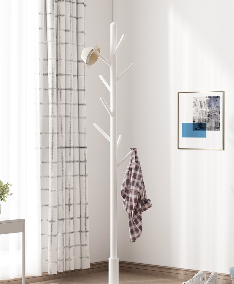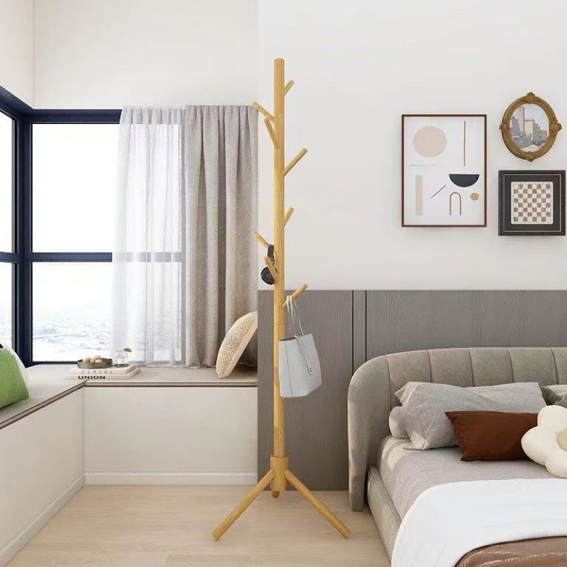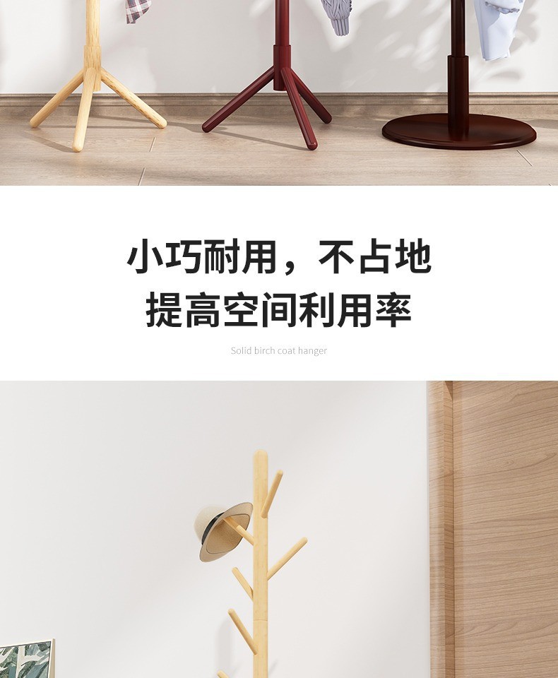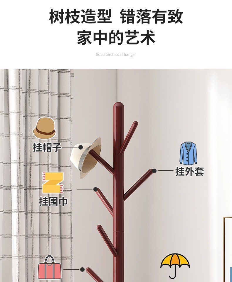 단단한 나무 코트 랙 바닥 침실 거실 옷로드 랙 가정용 실내 수직 간단한 교수형 가방 랙 모자스토어 가기