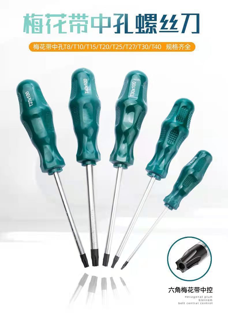 구멍이있는 육각형 매화 스크루 드라이버 T8T10T15T20T25T27T30T40 미터 유형 6 꽃 스크루 드라이버