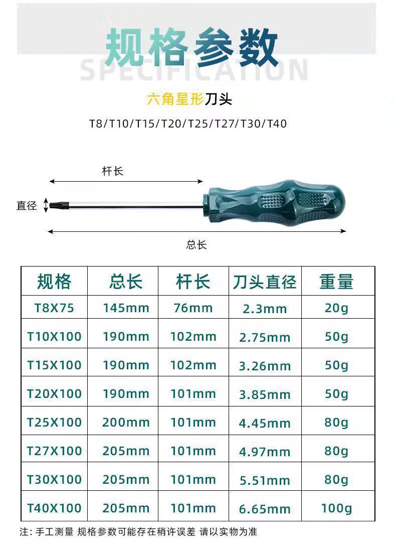 구멍이있는 육각형 매화 스크루 드라이버 T8T10T15T20T25T27T30T40 미터 유형 6 꽃 스크루 드라이버스토어 가기