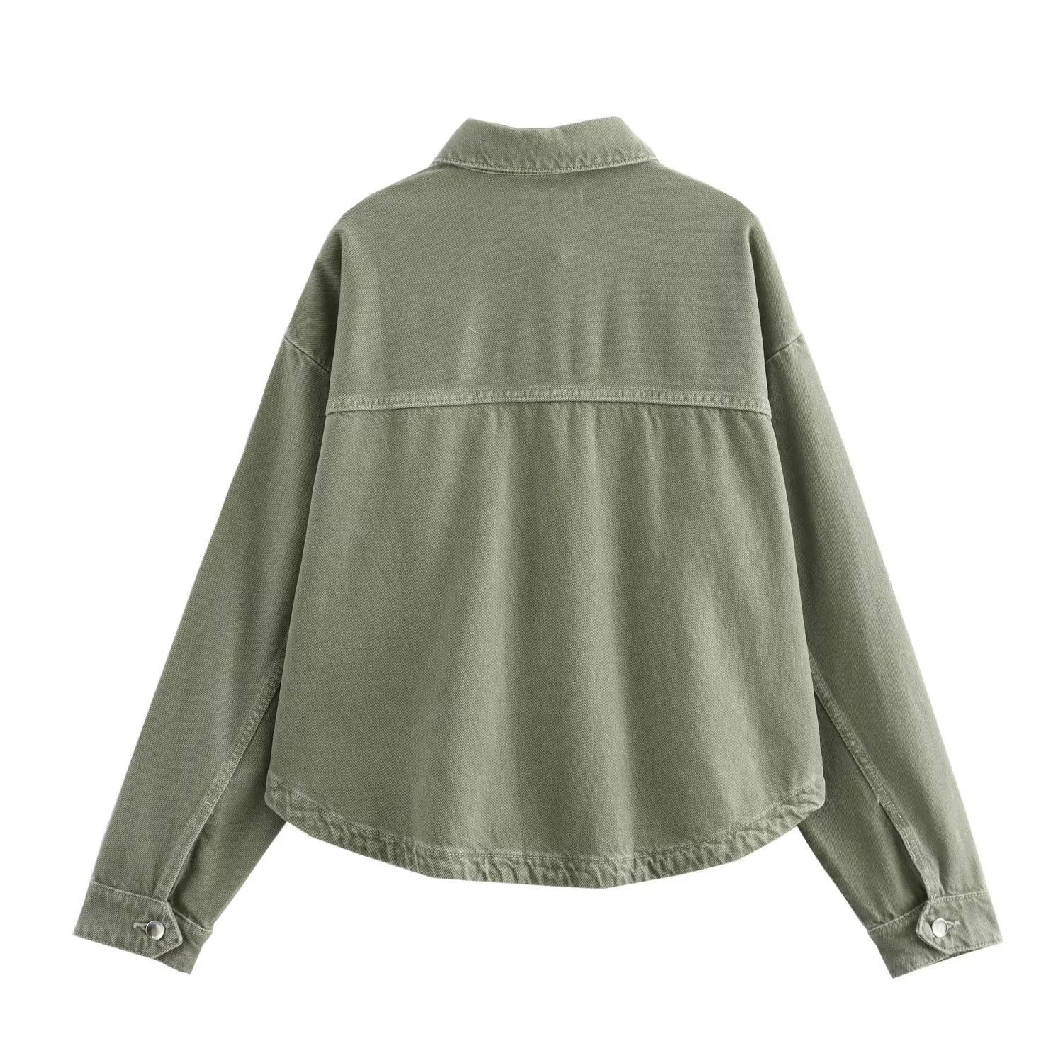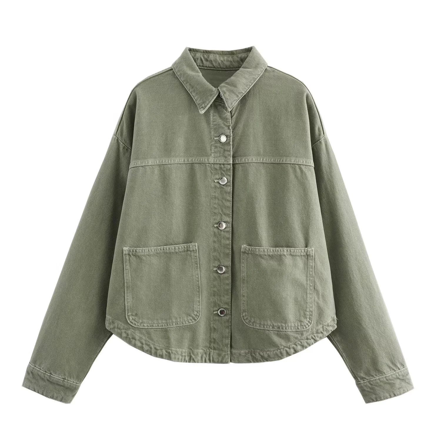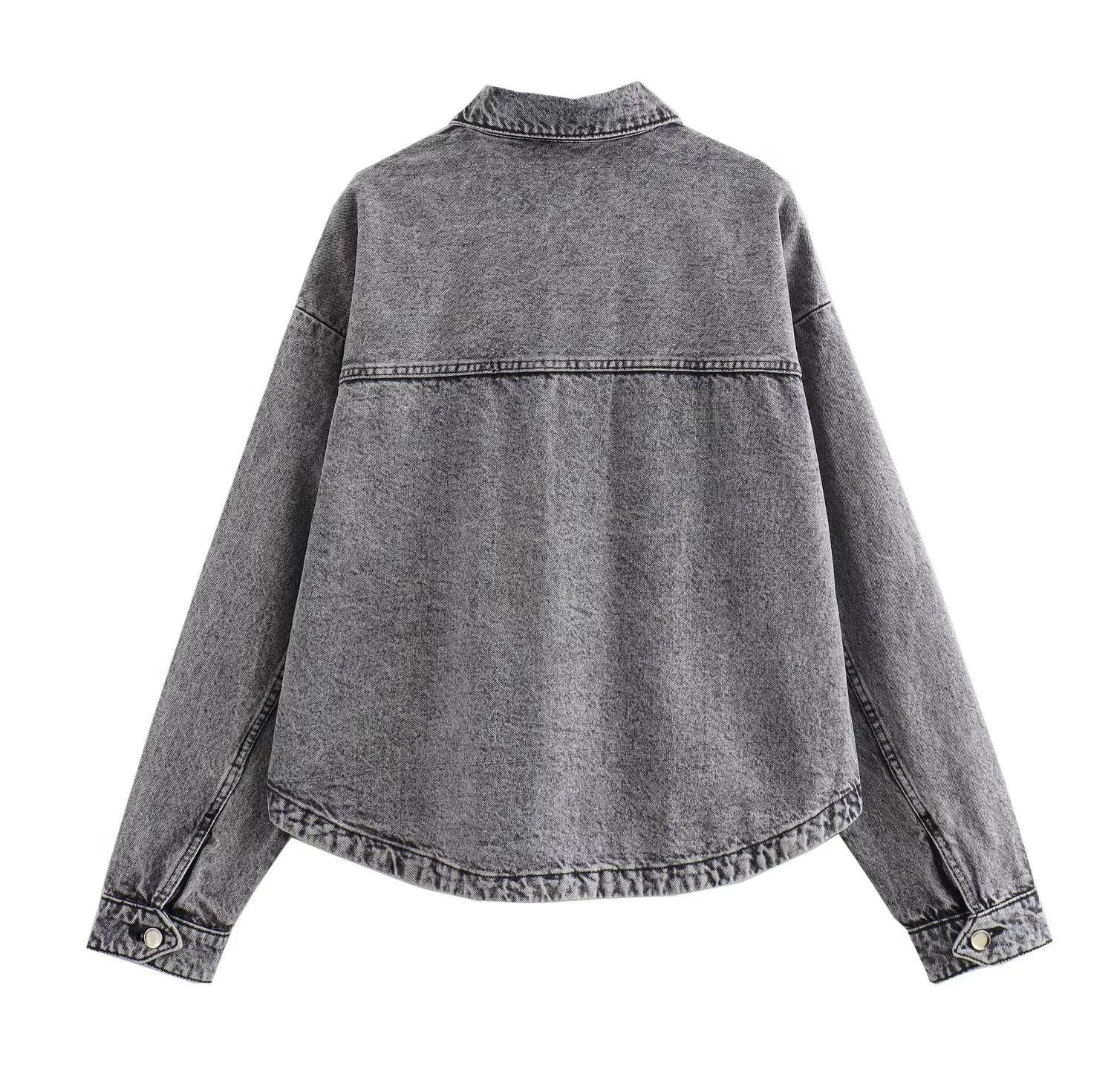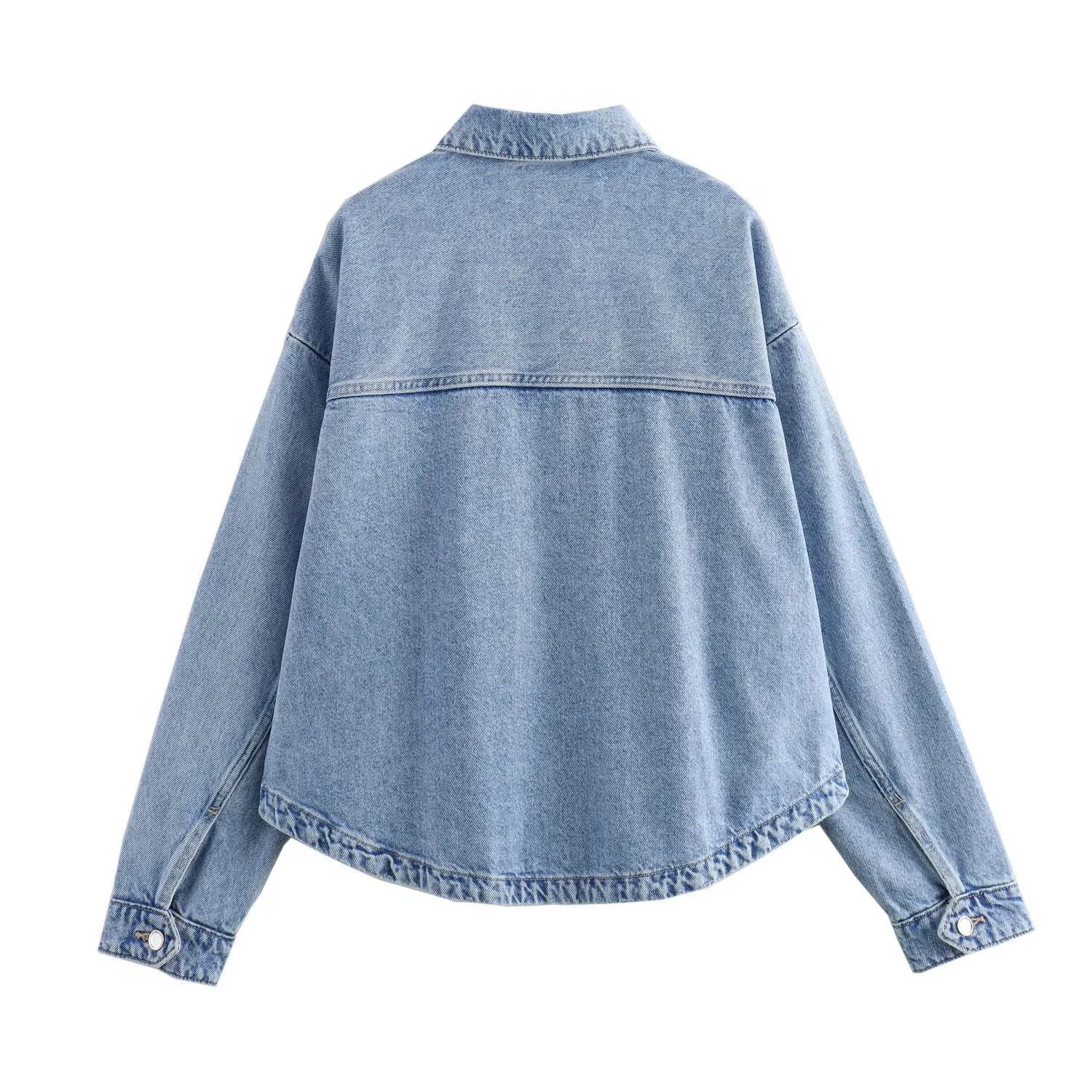 24 MSD 여자의 새로운 느슨한 캐주얼 올 매치 옷깃 긴 소매 파우치 데님 재킷 코트스토어 가기