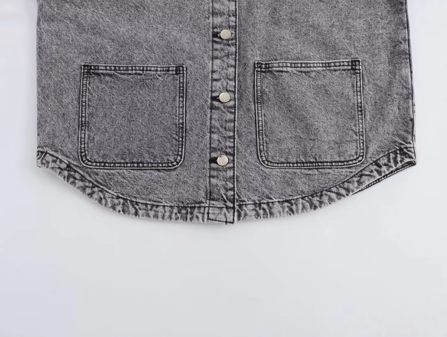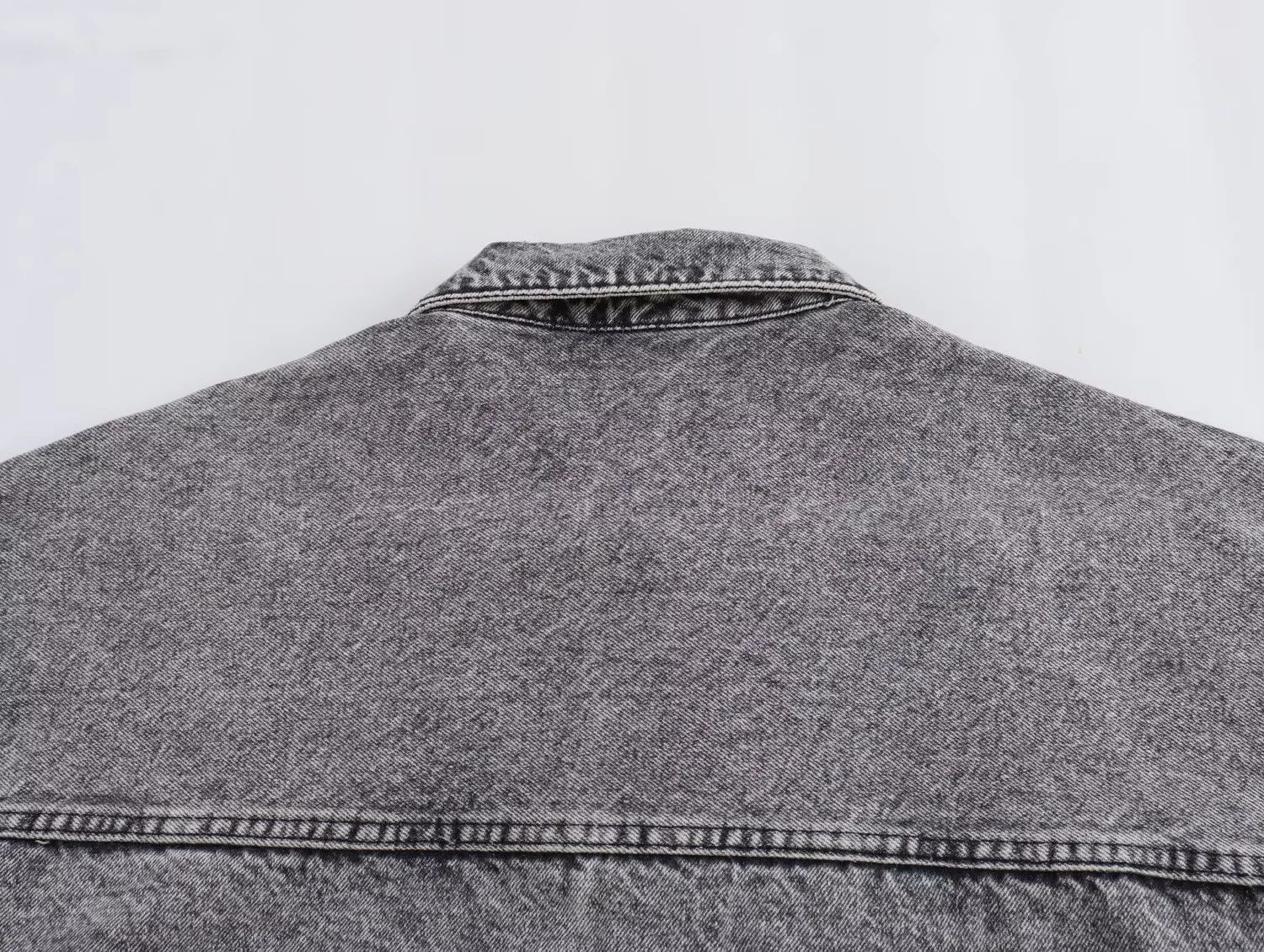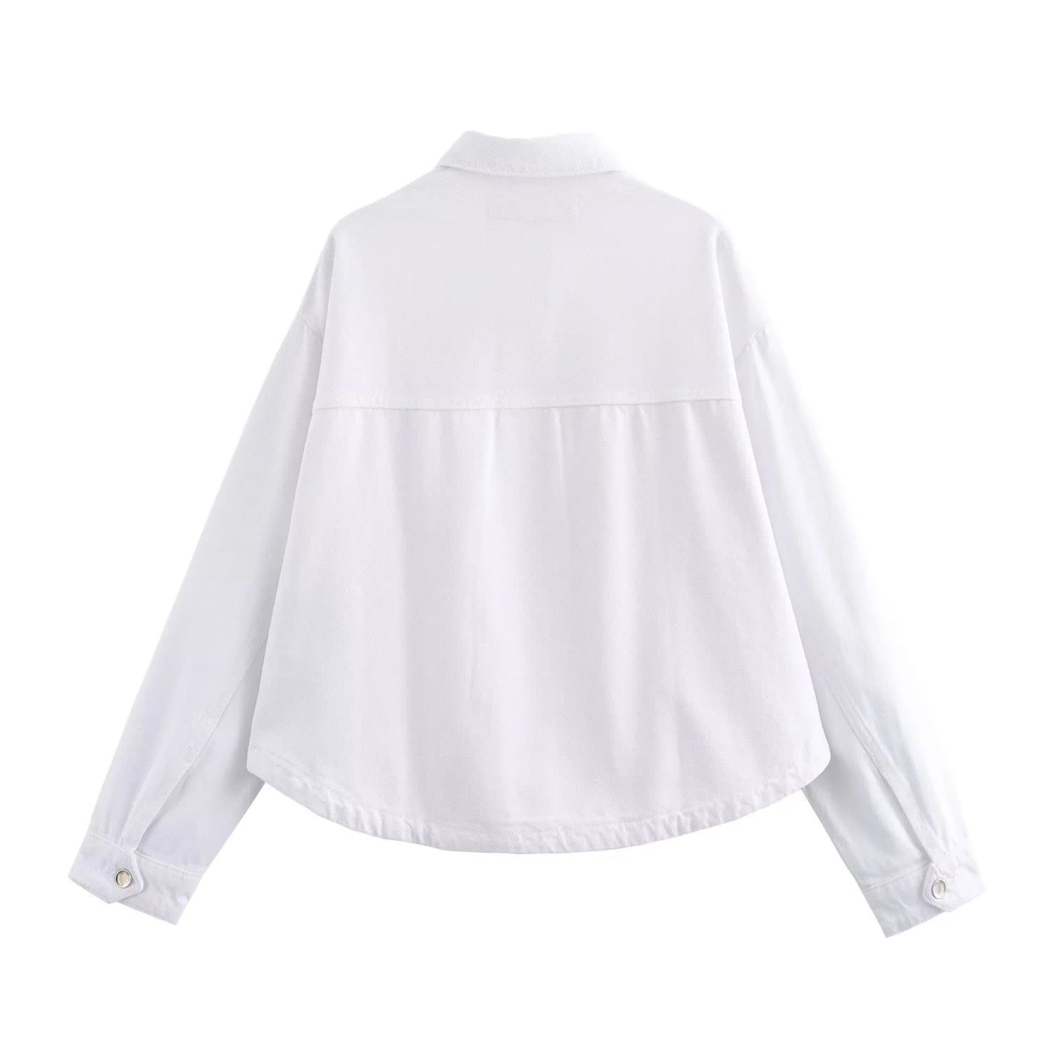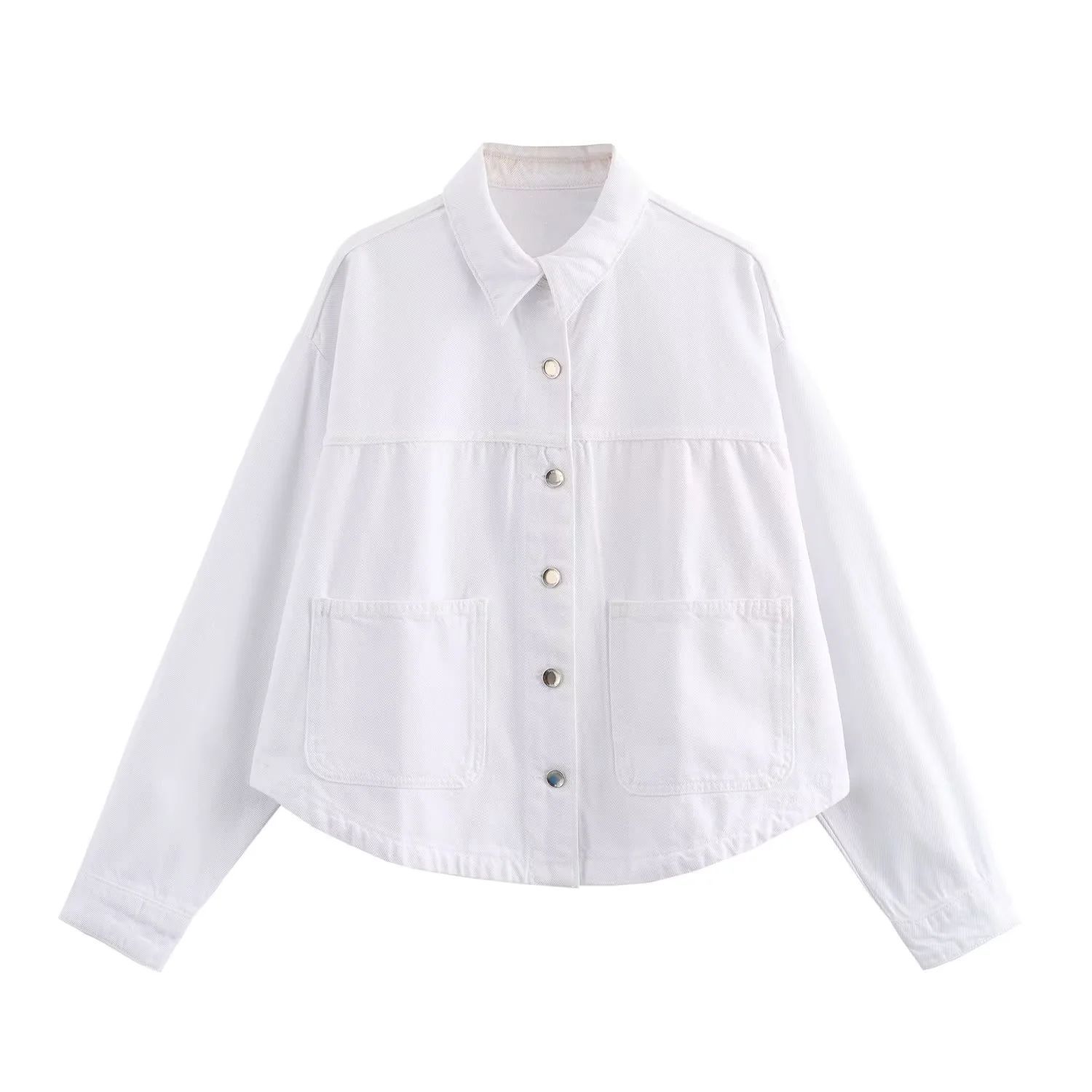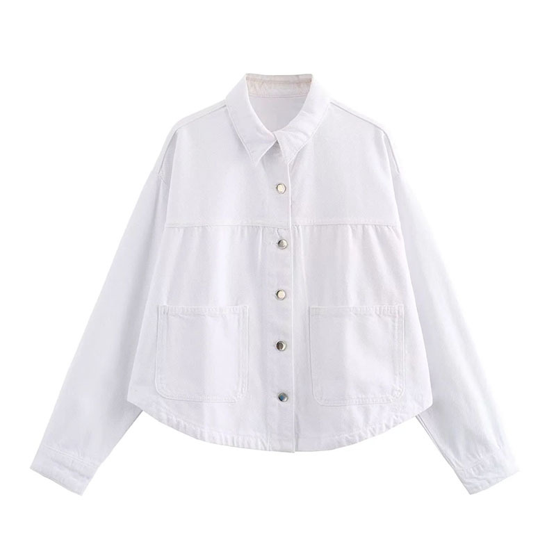 24 MSD 여자의 새로운 느슨한 캐주얼 올 매치 옷깃 긴 소매 파우치 데님 재킷 코트스토어 가기