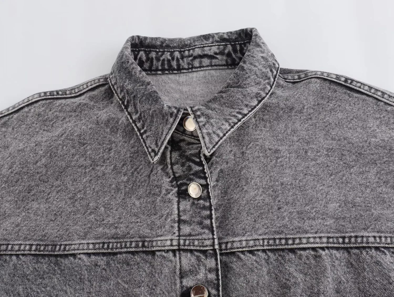 24 MSD 여자의 새로운 느슨한 캐주얼 올 매치 옷깃 긴 소매 파우치 데님 재킷 코트