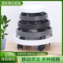 圆形钢化轮拖栽底座带 移动底托接水盘 加厚钢化轮花盆托盘批发