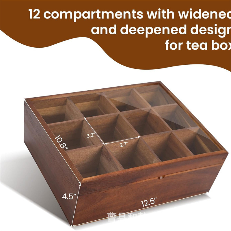 아카시아 우드 티 박스 멀티 그리드 티 룸 커피 캡슐 저장 상자 티백 주최자 클램 쉘 솔리드 우드 스토리지 박스