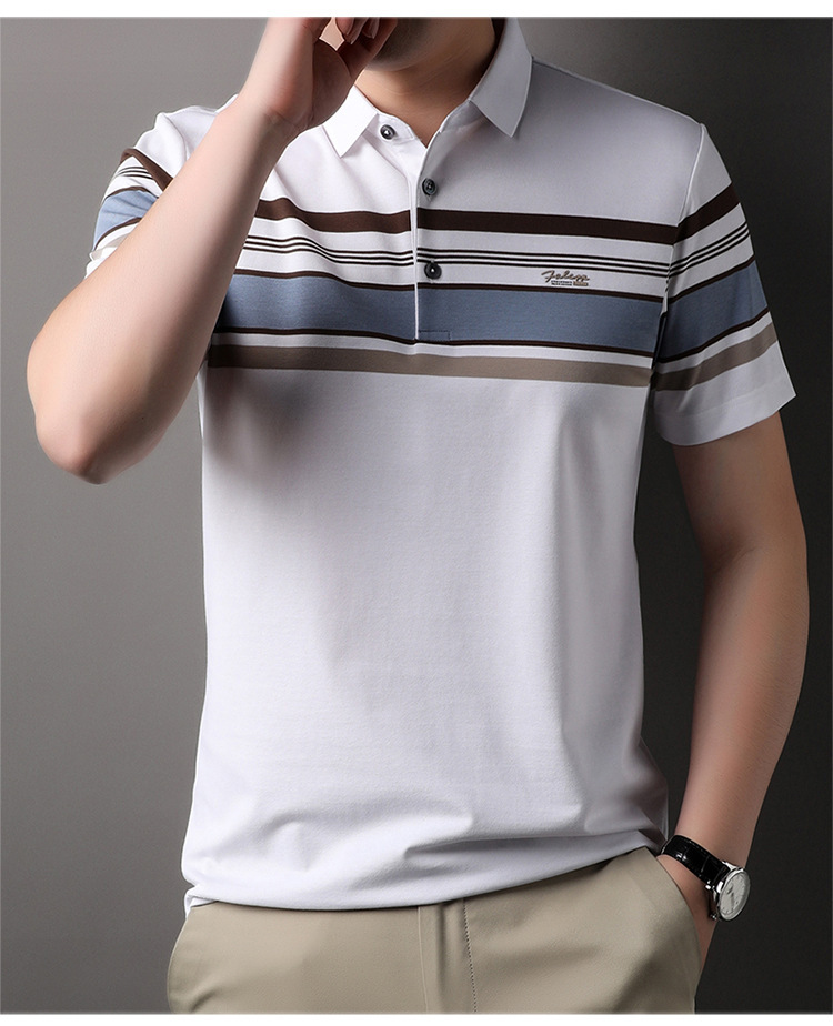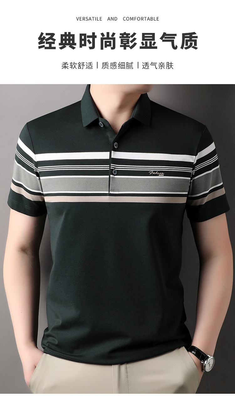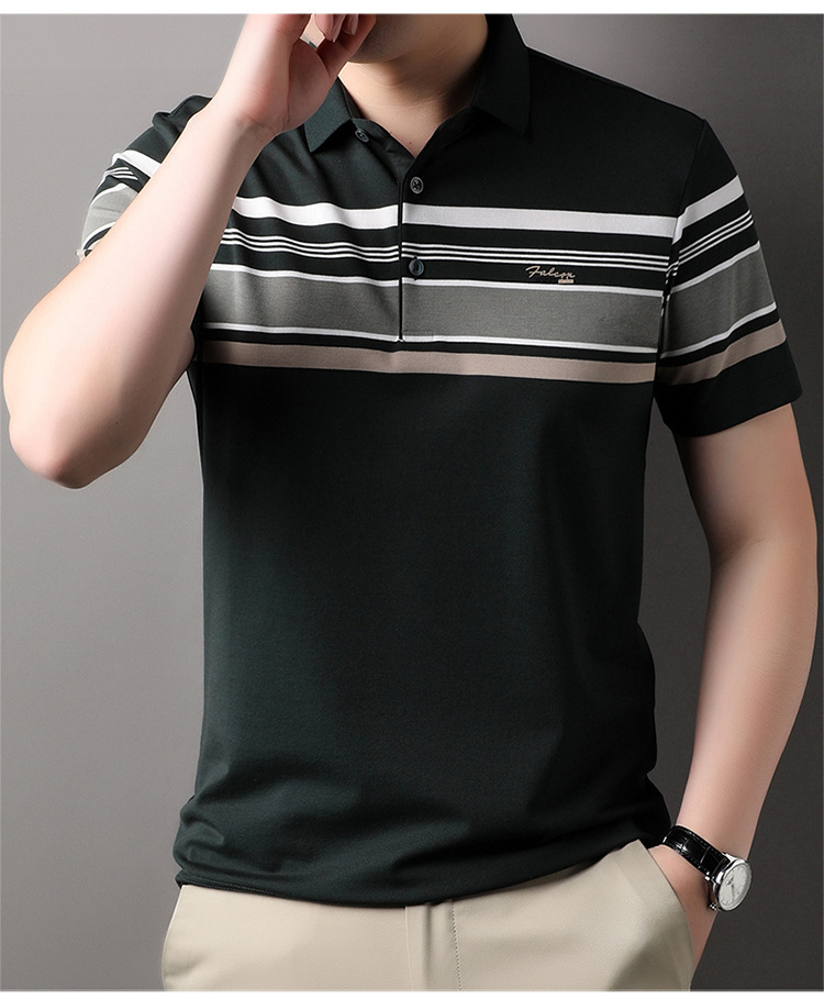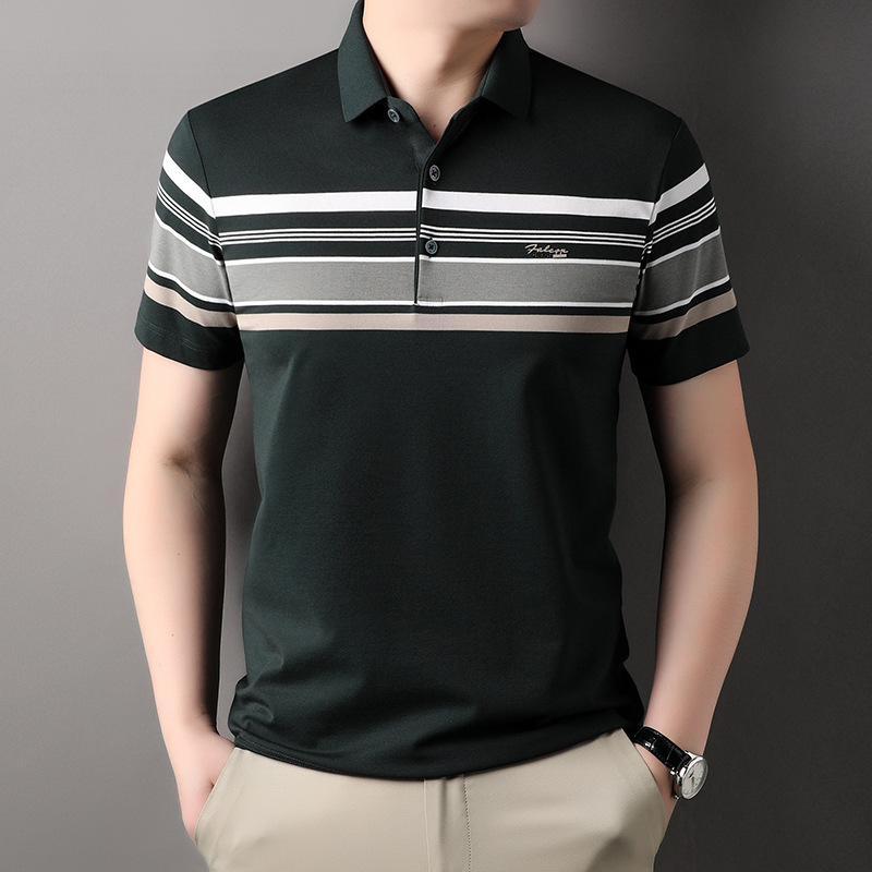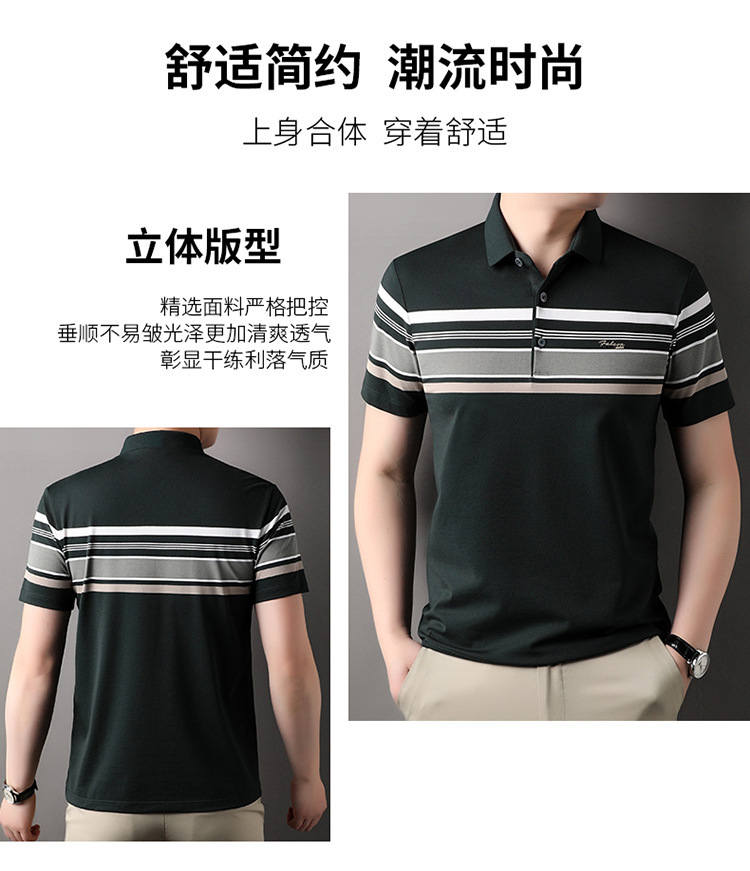 스트라이프 패션 풀오버 반팔 티셔츠 남자 2024 년 여름 새로운 한국식 옷깃 느슨한 캐주얼 올매치 트렌디 탑