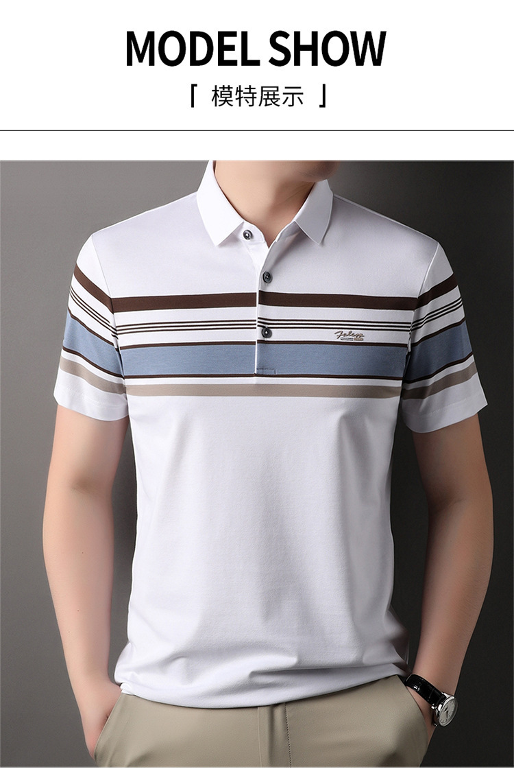 스트라이프 패션 풀오버 반팔 티셔츠 남자 2024 년 여름 새로운 한국식 옷깃 느슨한 캐주얼 올매치 트렌디 탑스토어 가기