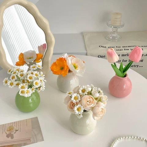 Ins 스타일 장식 가짜 꽃 말린 꽃 튤립 인공 꽃 세트 데스크탑 장식 미니 넓은 입 세라믹 작은 꽃병스토어 가기