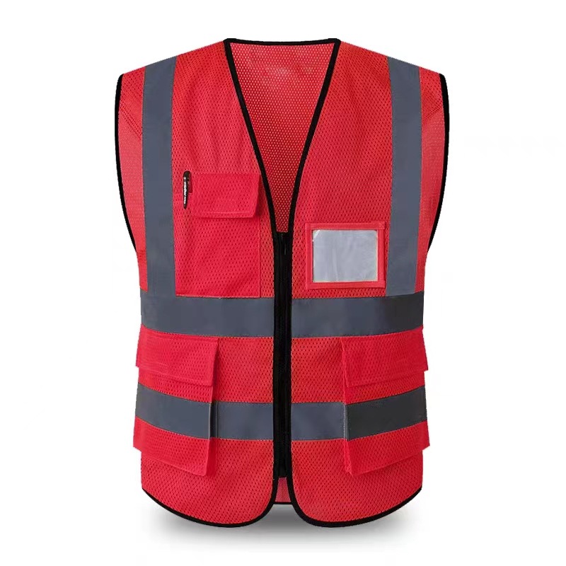 반사 의류 안전 의류 조끼 조끼 도매 멀티 포켓 지퍼 건설 위생 의류 인쇄 로고