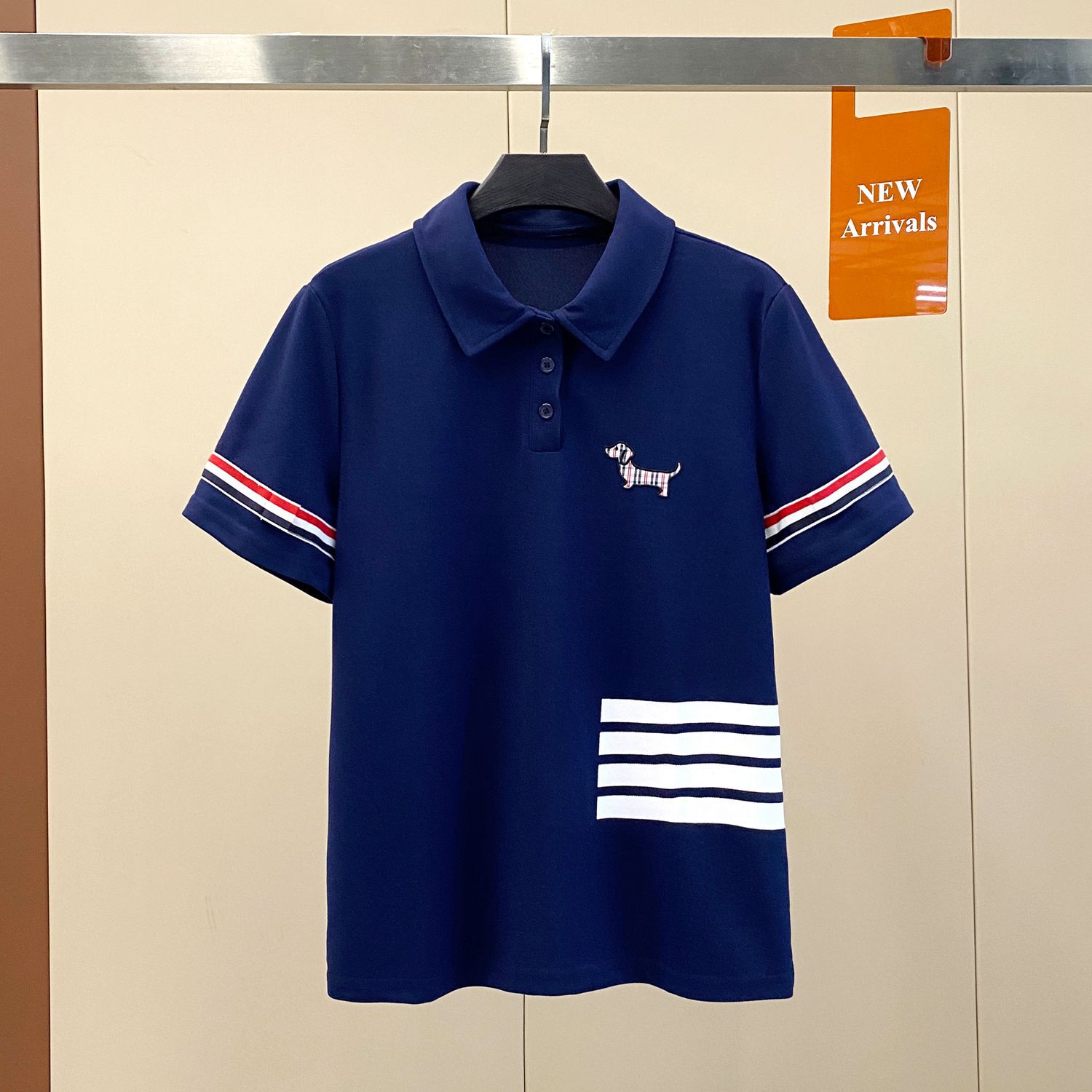 • 더블 소매 리본 자수 개 폴로 셔츠 네이비