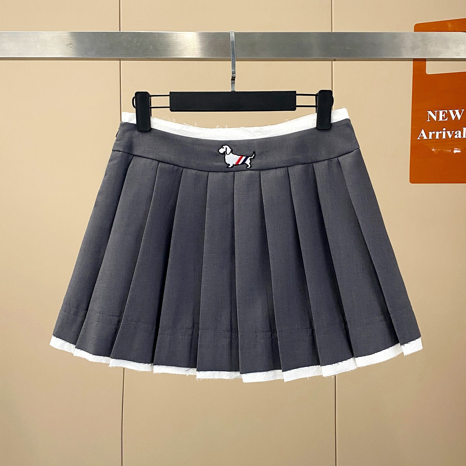 • 화이트 엣지와 그레이 플리츠 스커트