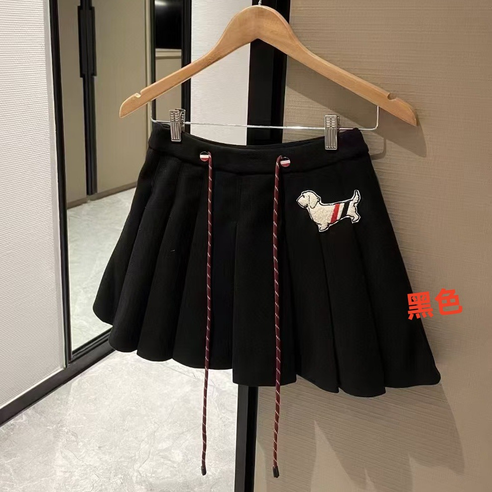 복주머니 아카데믹 스타일 패션 세트 여성용 강아지 자수 반팔 티셔츠 하이웨이스트 슬림핏 플리츠 숏 스커트스토어 가기
