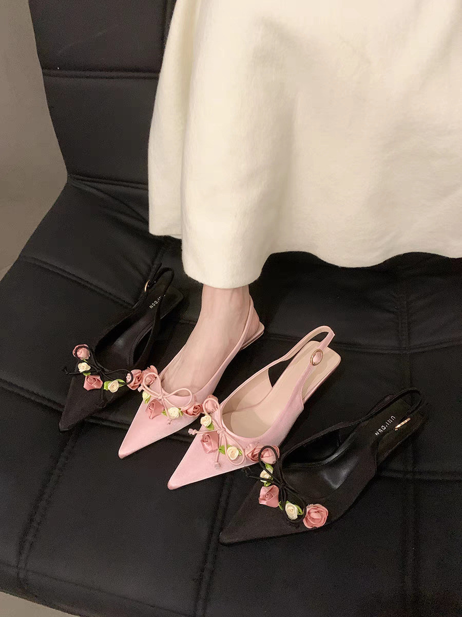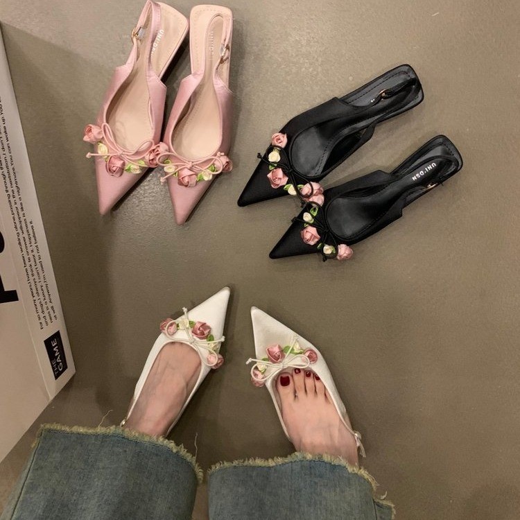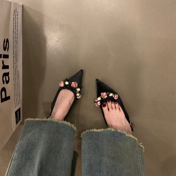 꽃무늬 디자인의 달콤하고 우아한 하이힐, 2025년 해외 신상 스틸레토 힐, 프렌치 스타일 여성용 포인티드 토 슈즈스토어 가기