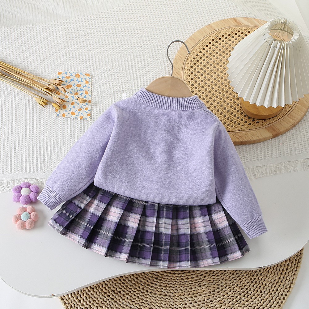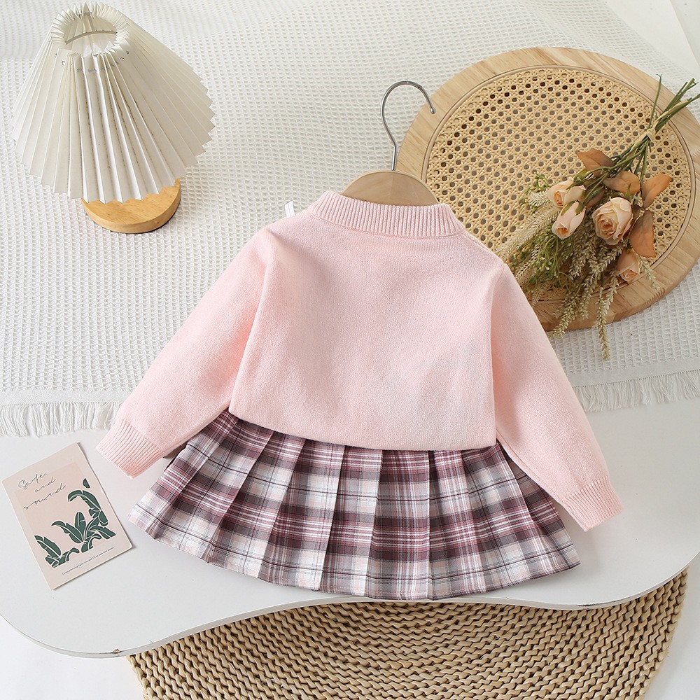 여아용 코트 신상 니트 가디건 컬리지 스타일 체크 스커트 JK 스웨터 세트 여아용 한국 스타일 트렌디