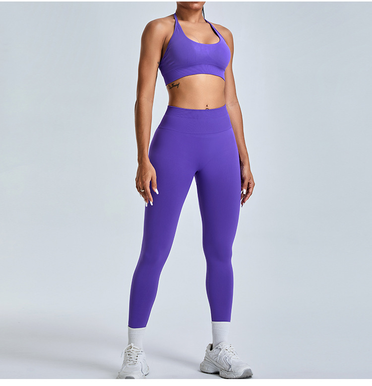 원활한 교수형 목 충격 방지 뷰티 백 요가 세트 브래지어 여성의 빠른 건조 스포츠 속옷 가슴 패드 달리기 피트니스 조끼