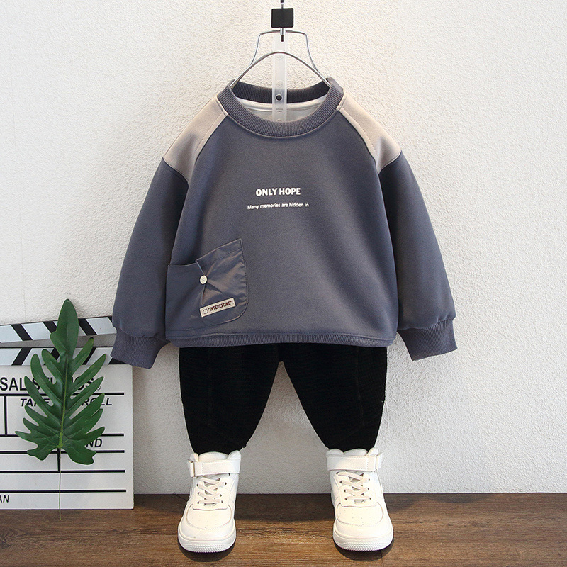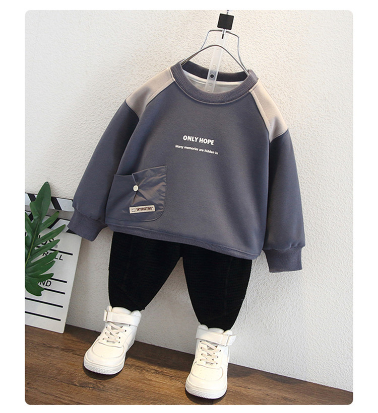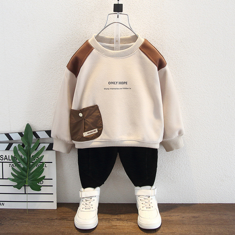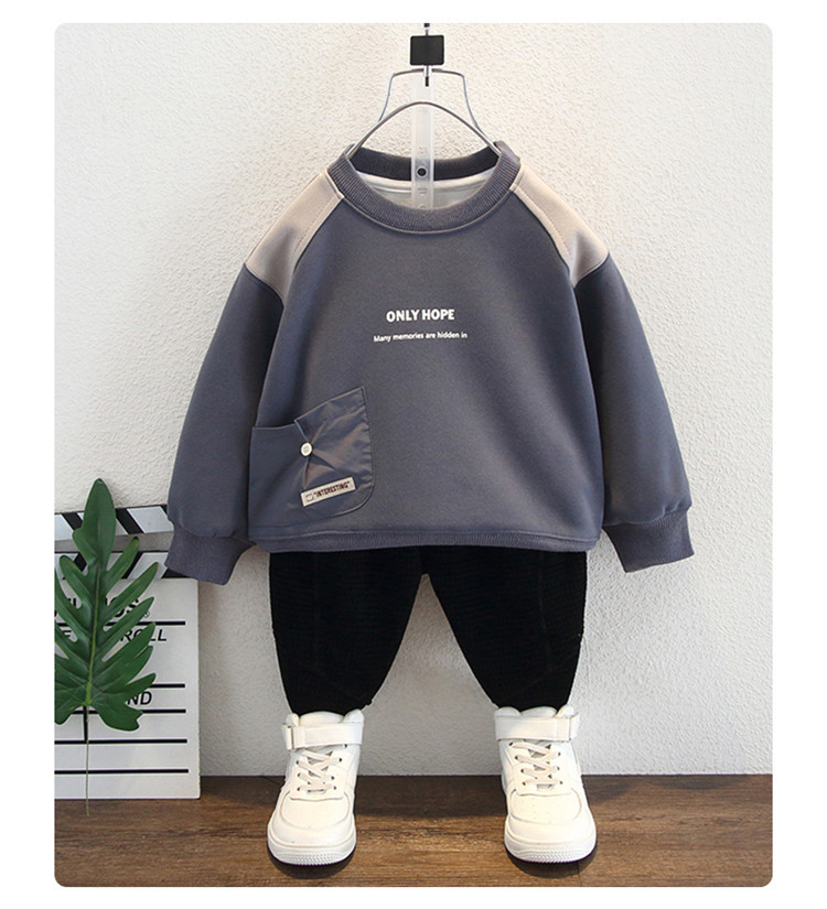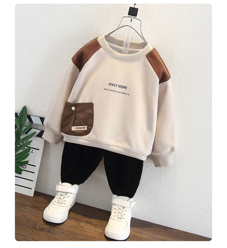 소년 봄과 가을 바느질 포켓 스웨터 2024 새로운 아동복 중소 어린이 아기 시원하고 잘 생긴 대외 무역 아동복