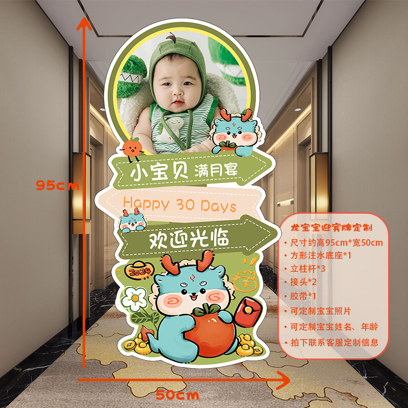 드래곤 베이비 보름달 백일 연회 토끼 아기 1 년 된 지침 환영 카드 장식 장면 레이아웃 사진 행사스토어 가기