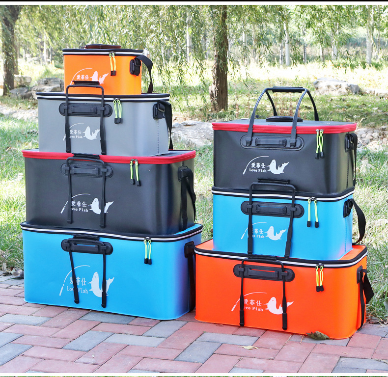 뚜껑 물고기 양동이 낚시 도구 상자 물고기 양동이를 가진 낚시 양동이 접히는 물 탱크 휴대용 양동이