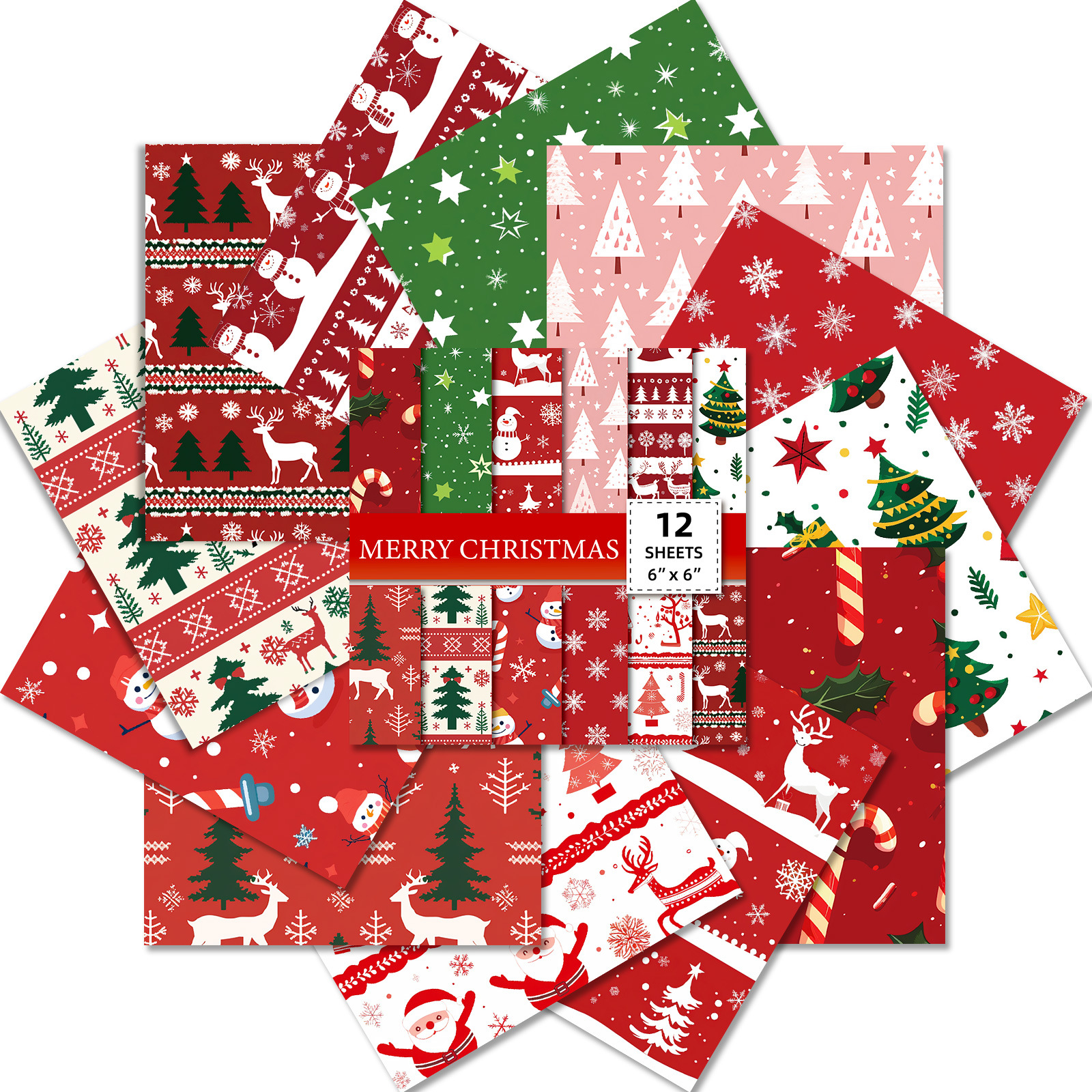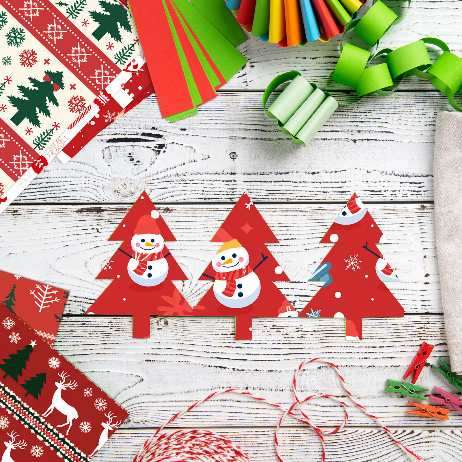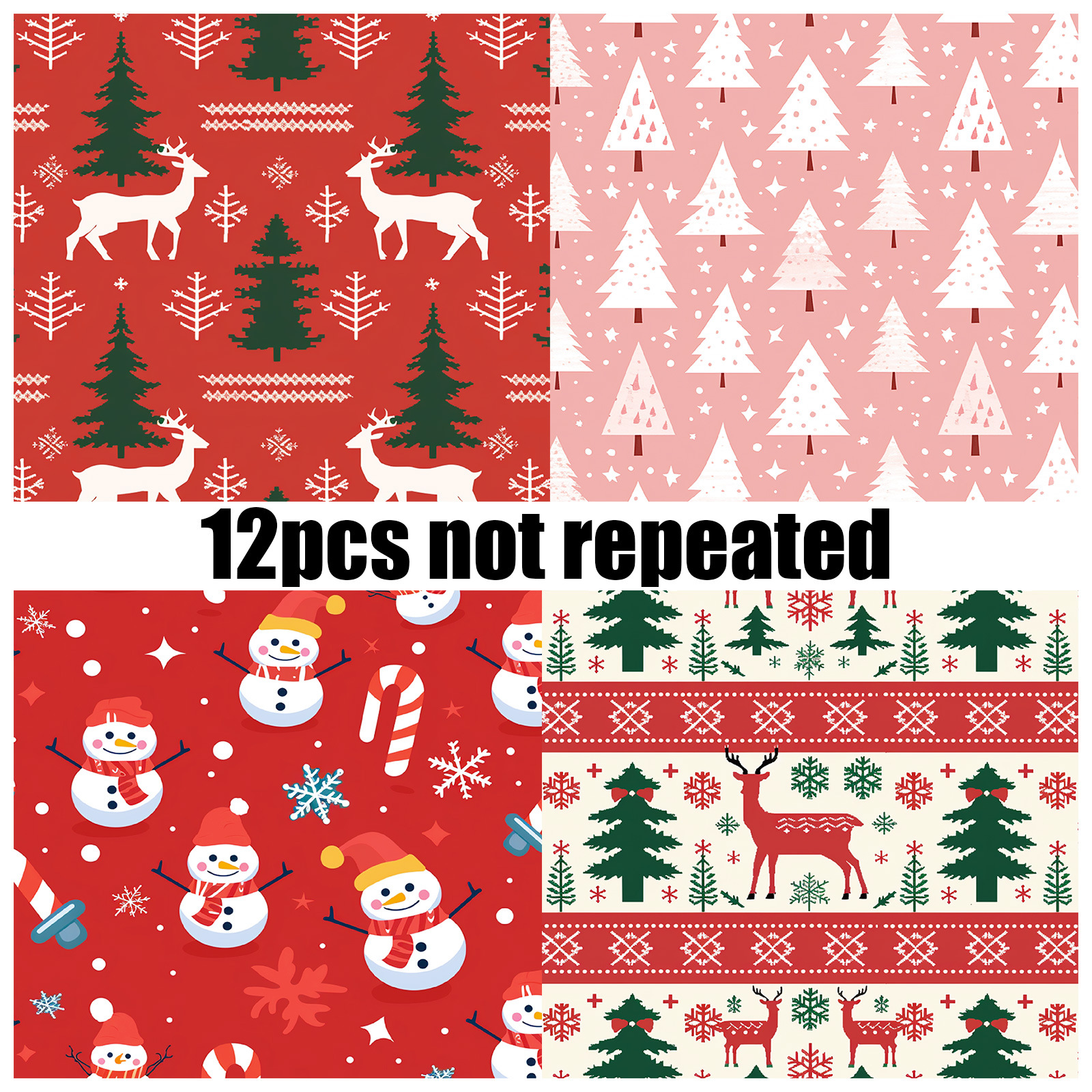 크리스마스 트리 손 계정 콜라주 스크랩북이 책을위한 크리스마스 소재 종이 12 장의 반복되지 않는 눈사람스토어 가기
