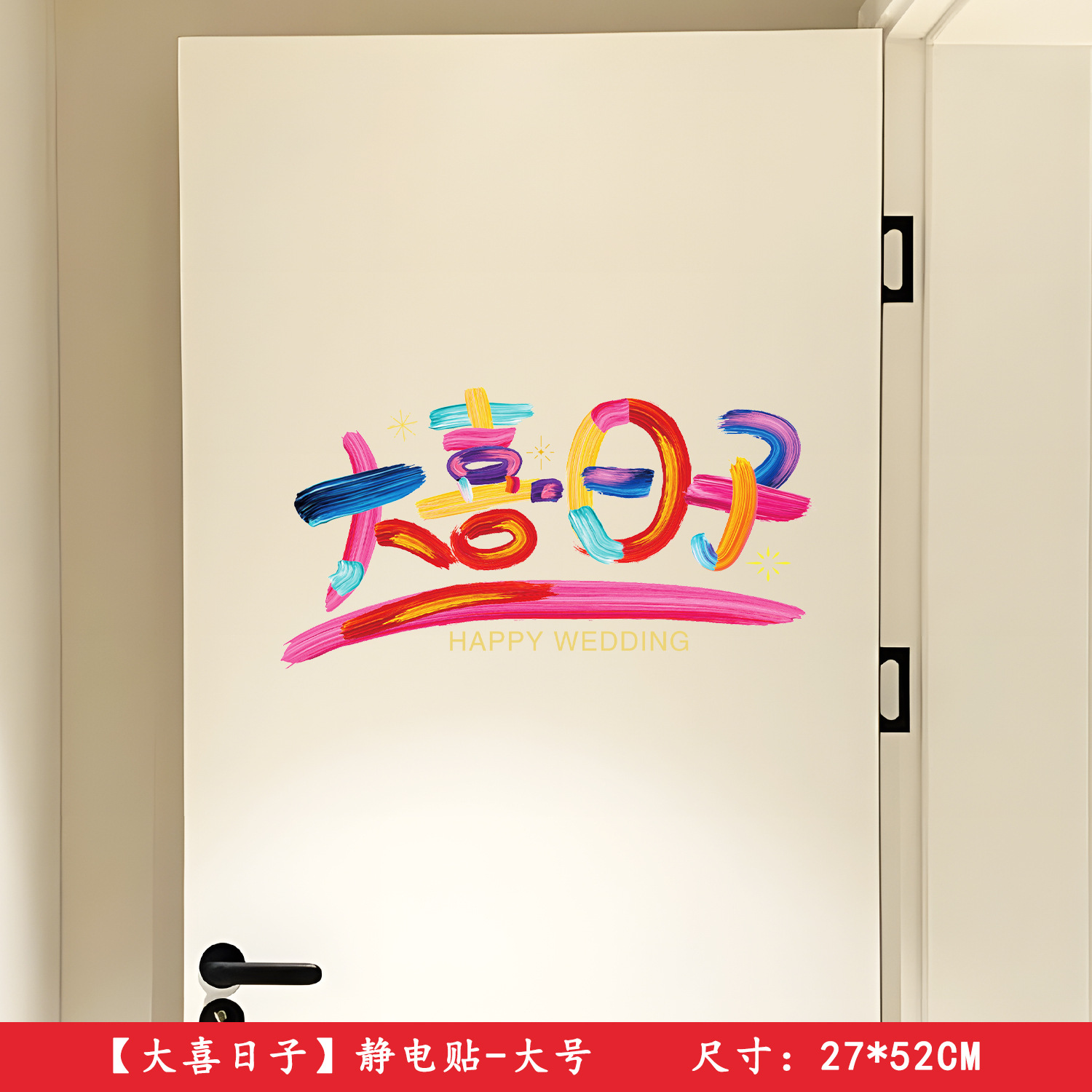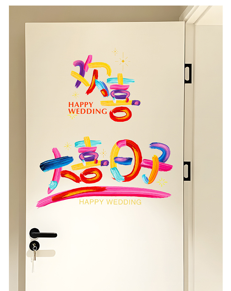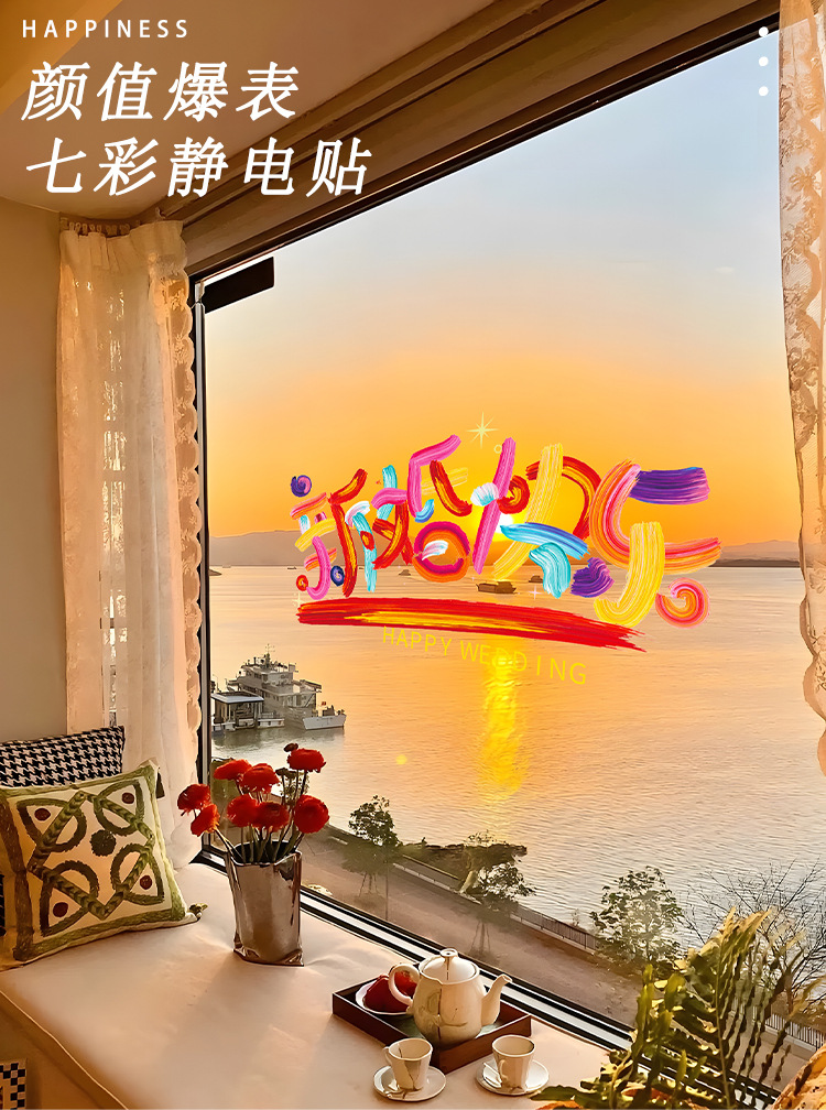 웨딩 룸 배열 웨딩 특수 컬러 정전기 스티커 웨딩 용품 도어 및 창 해피 단어 스티커 창 유리 장식 스티커