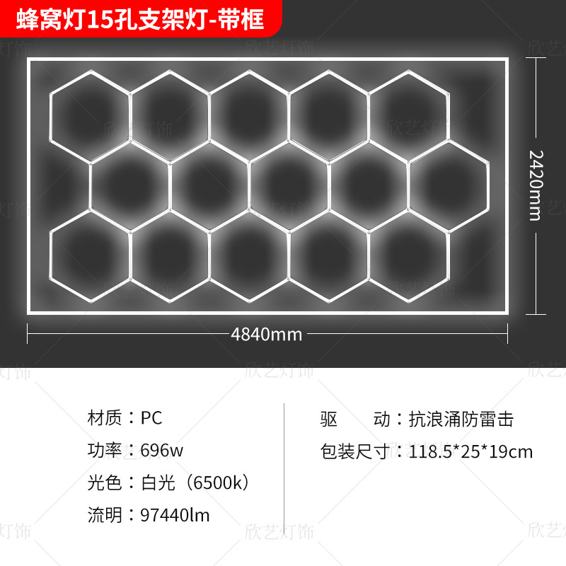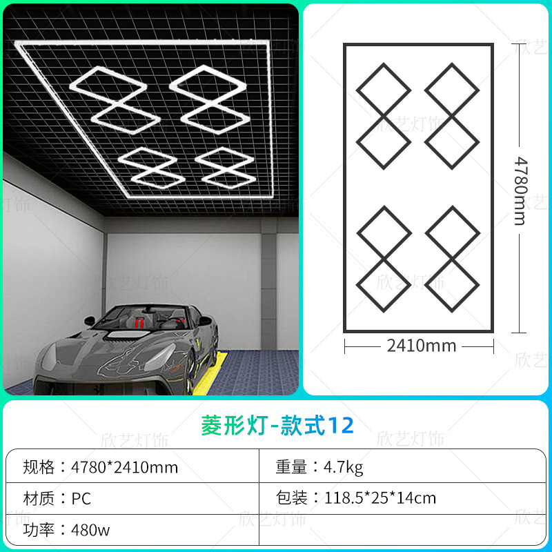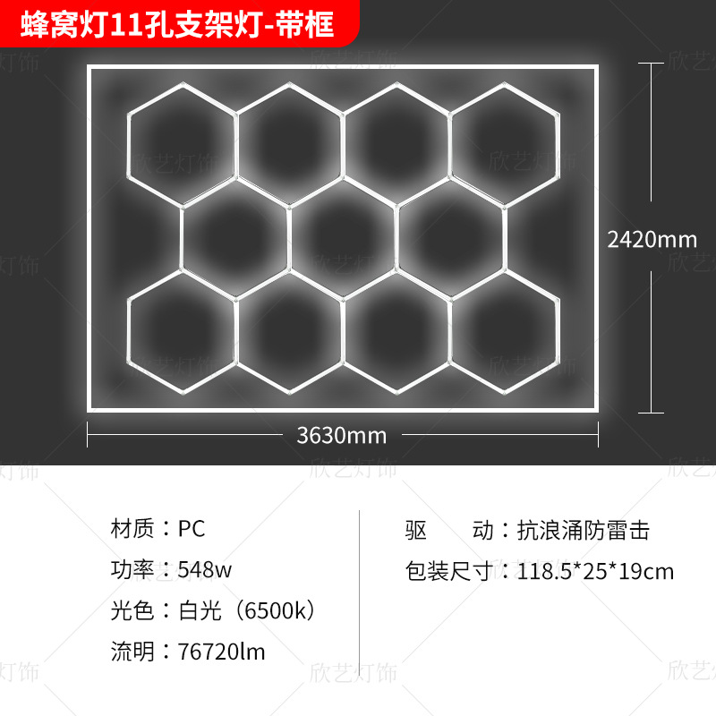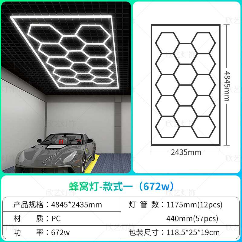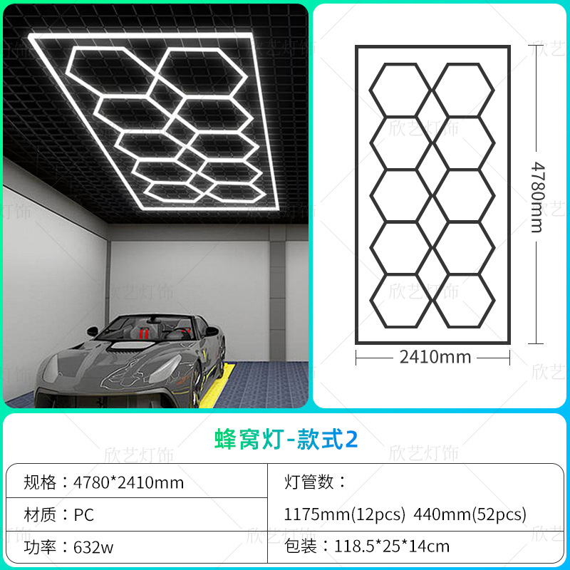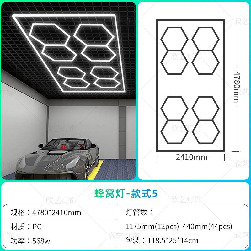 차고 램프 육각형 220V 벌집 램프 국경 110v 세차장 필름 천장 자동차 뷰티 스테이션 램프스토어 가기