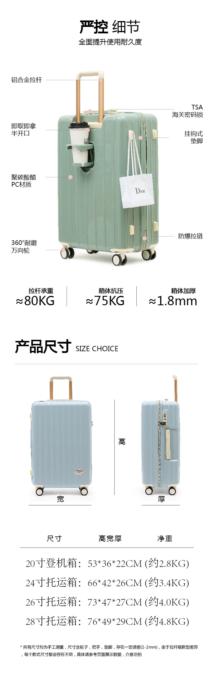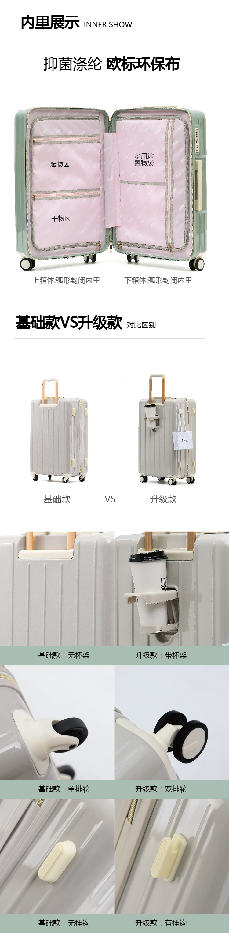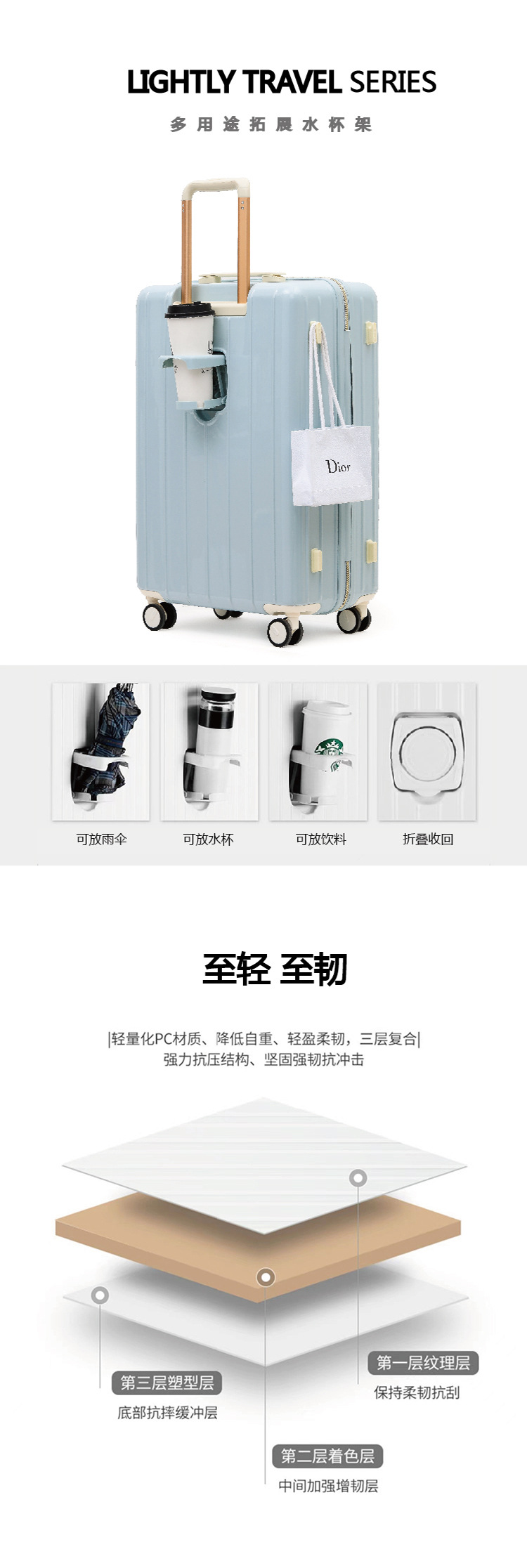 공장 공급 일본 20 인치 탑승 상자 hinomoto 유니버설 휠 여성 수하물 컵 홀더 여행 가방 트롤리 케이스