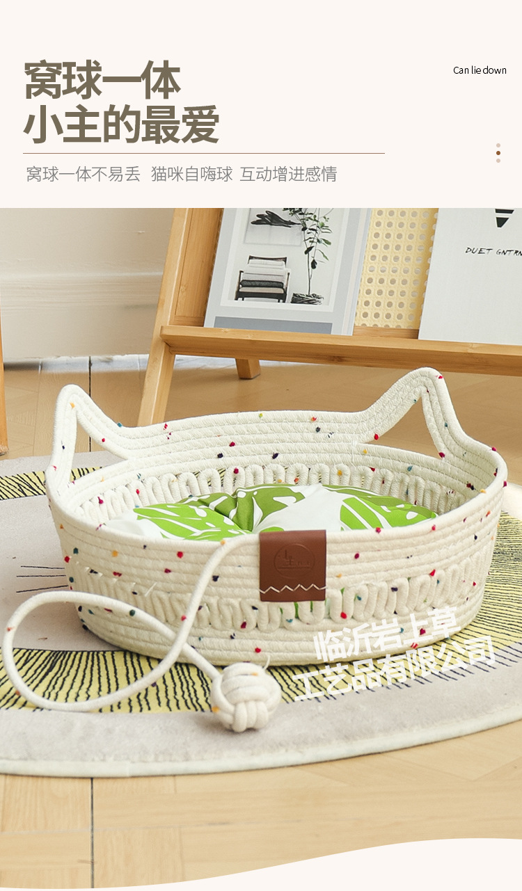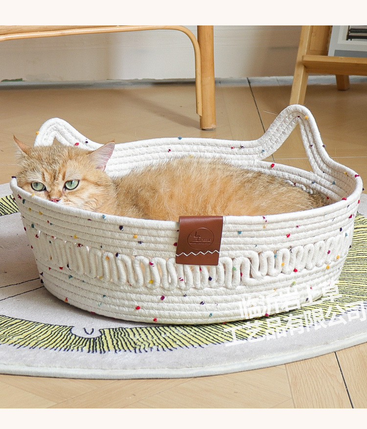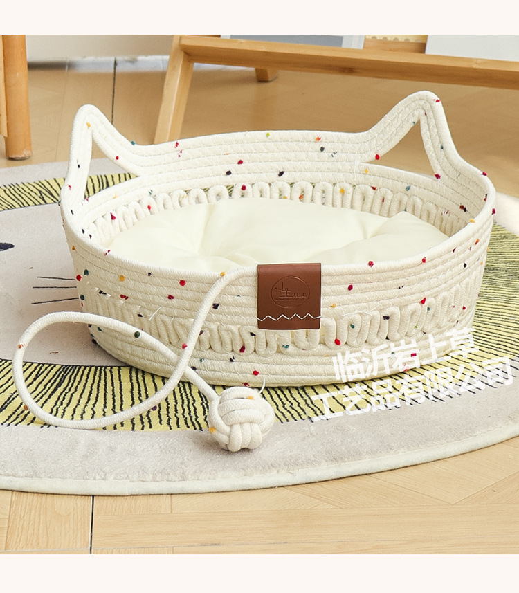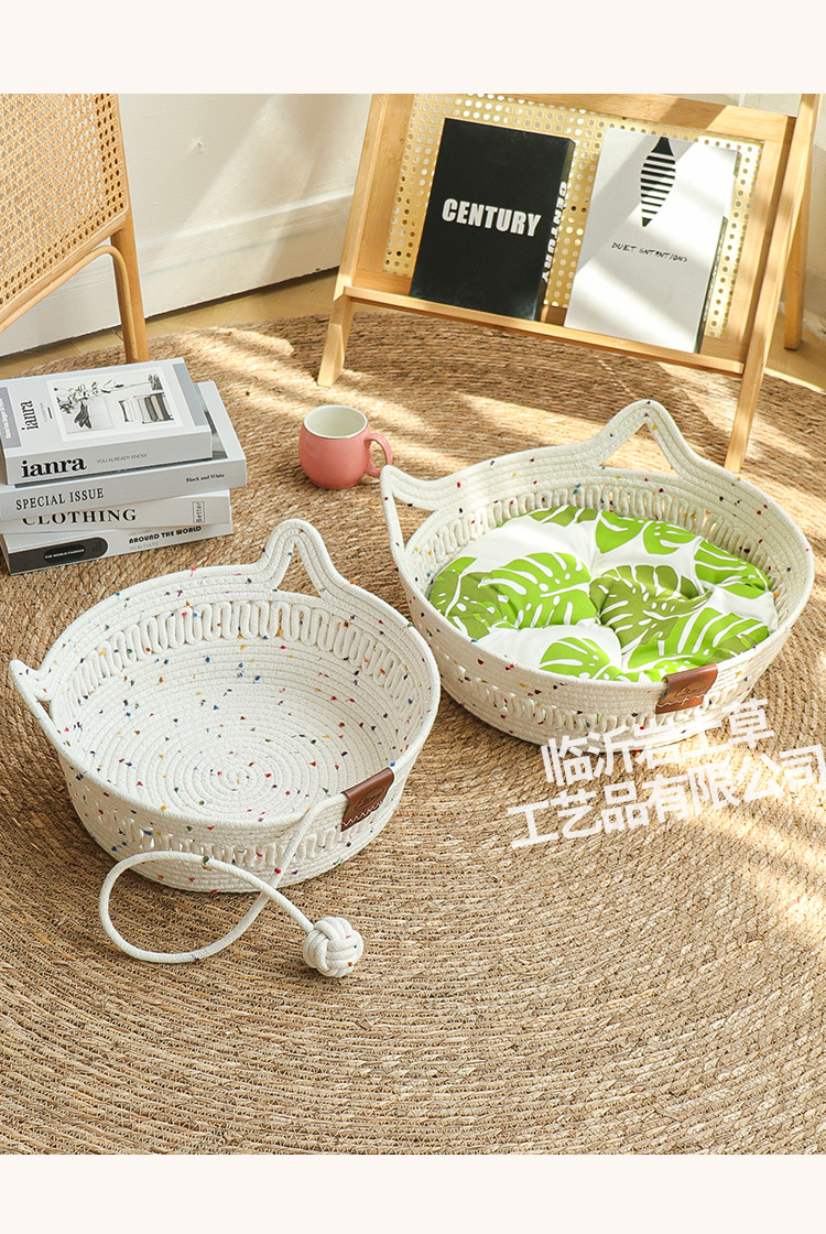 사계절 내내 사용할 수 있는 직조 고양이 둥지, 고양이 용품, 여름용 애완동물 둥지, 긁힘 방지, 통기성, 세탁 가능, 부스러기 방지 애완동물 침대