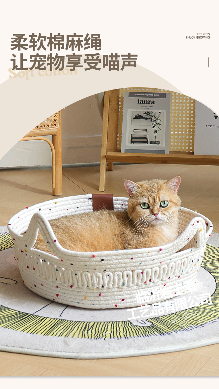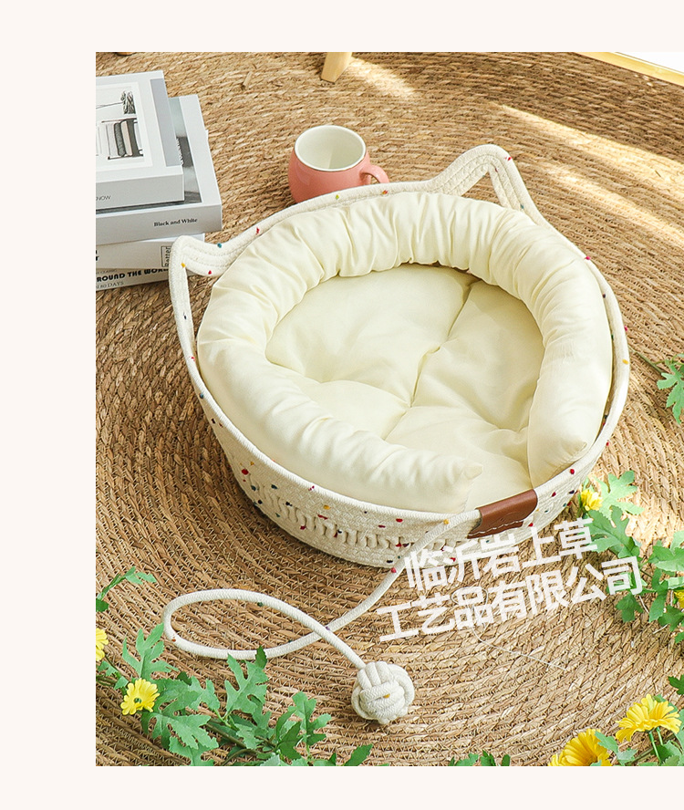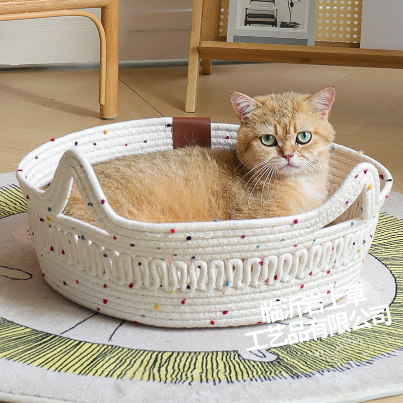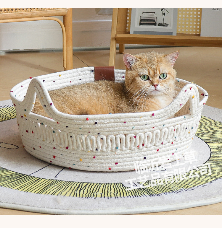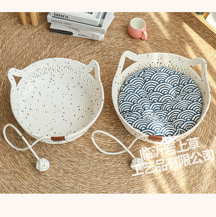 사계절 내내 사용할 수 있는 직조 고양이 둥지, 고양이 용품, 여름용 애완동물 둥지, 긁힘 방지, 통기성, 세탁 가능, 부스러기 방지 애완동물 침대
