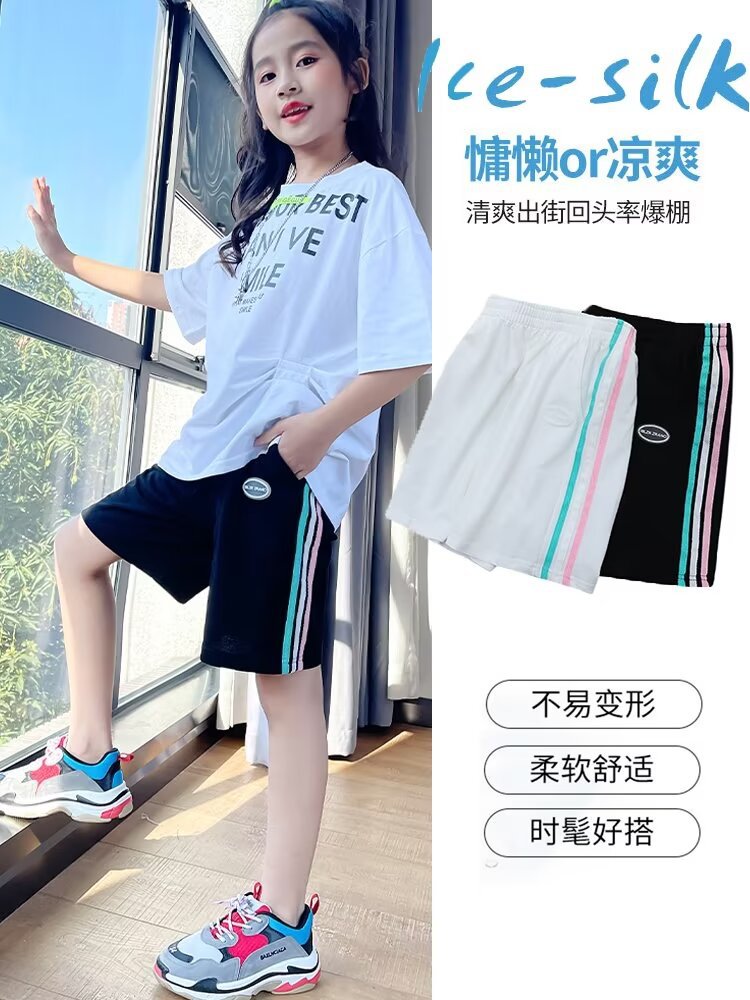 소녀 스포츠 반바지 여름 2024 새로운 어린이 5 점 바지 얇은 여름 중간 길이 바지 소녀 여름 바지