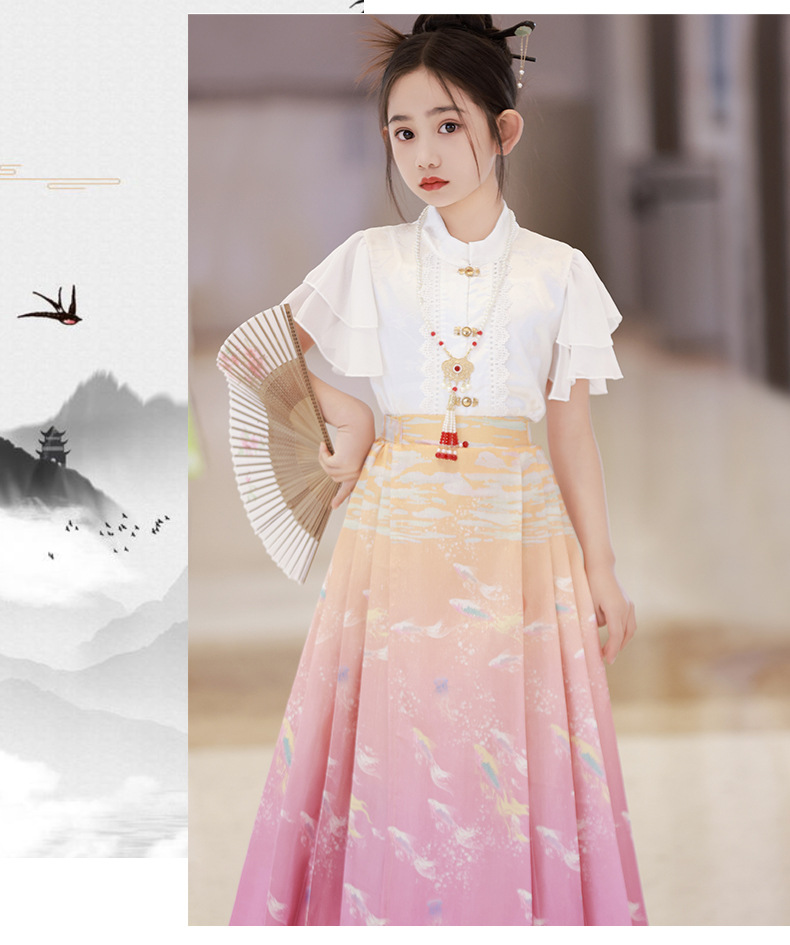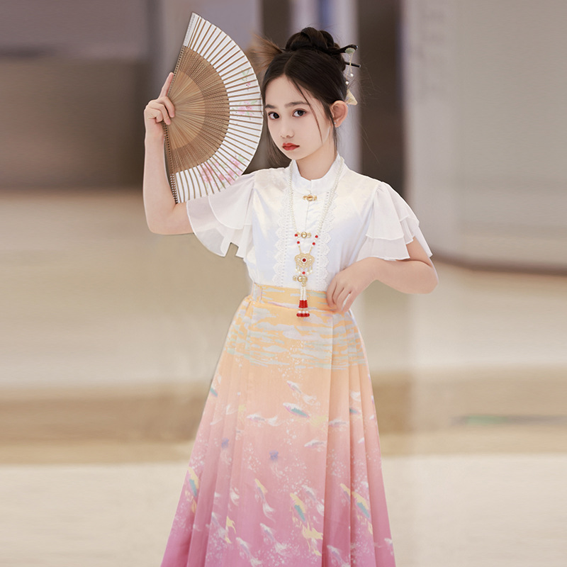 소녀들의 말 얼굴 치마 세트 중국식 여름 어린이 개선 된 골동품 슈퍼 요정 한푸 스커트 큰 어린이 새로운 중국식 탕 세트