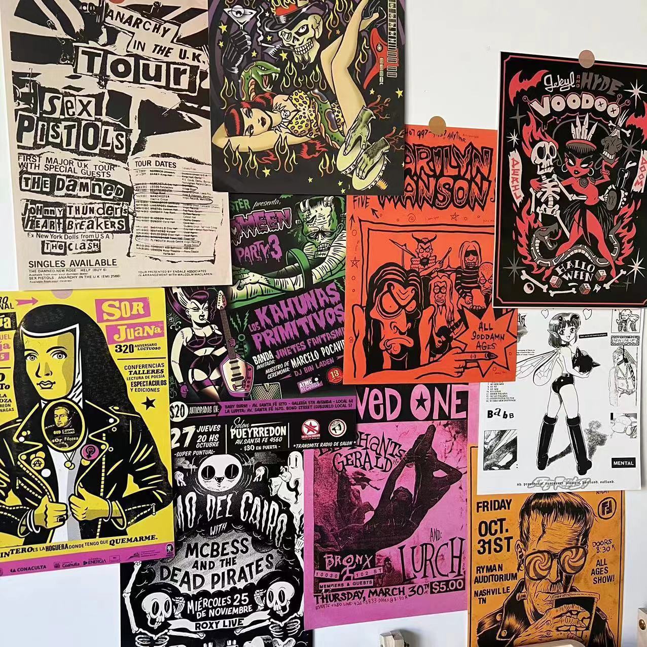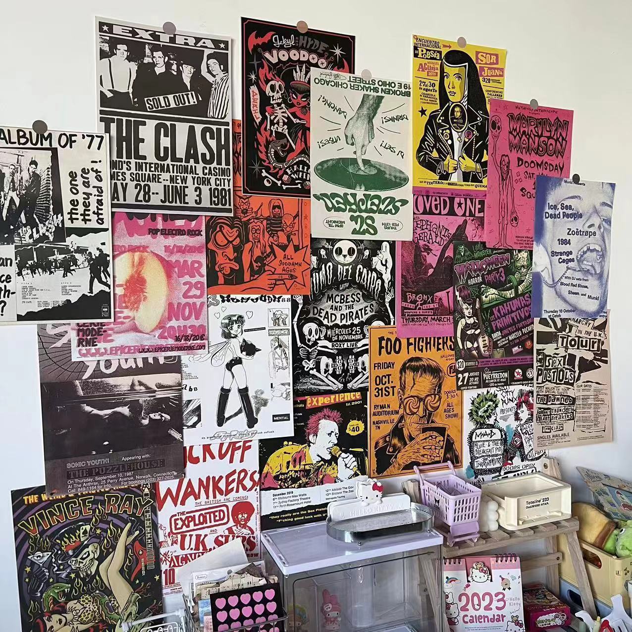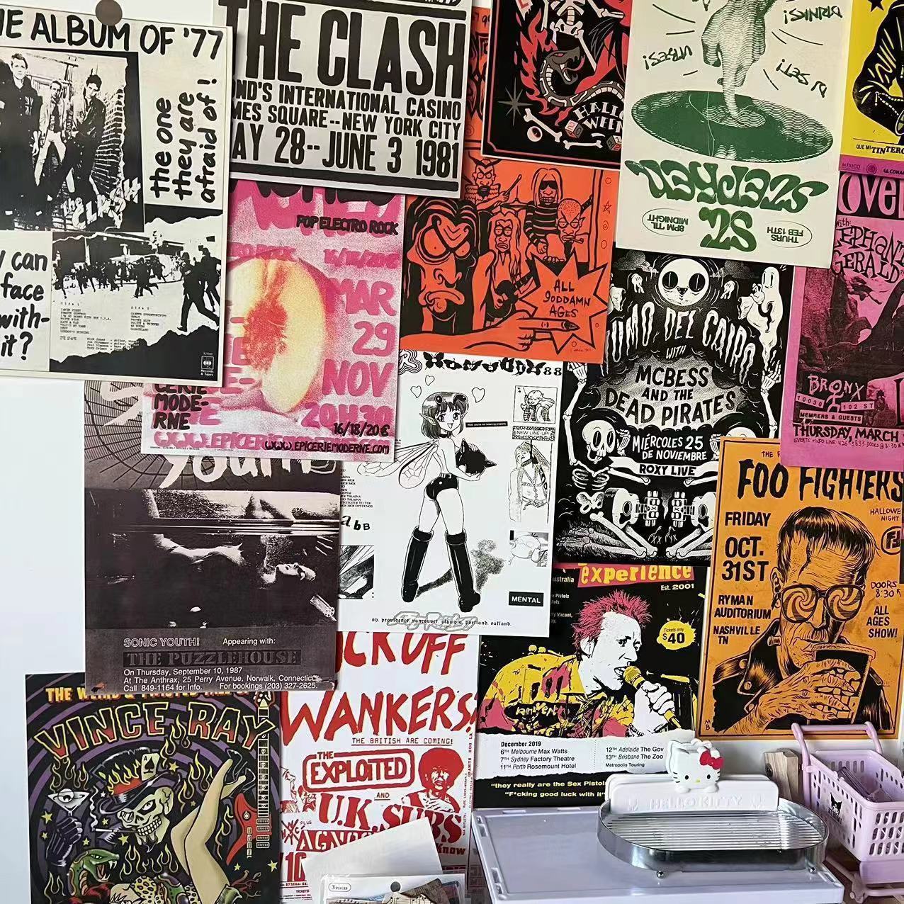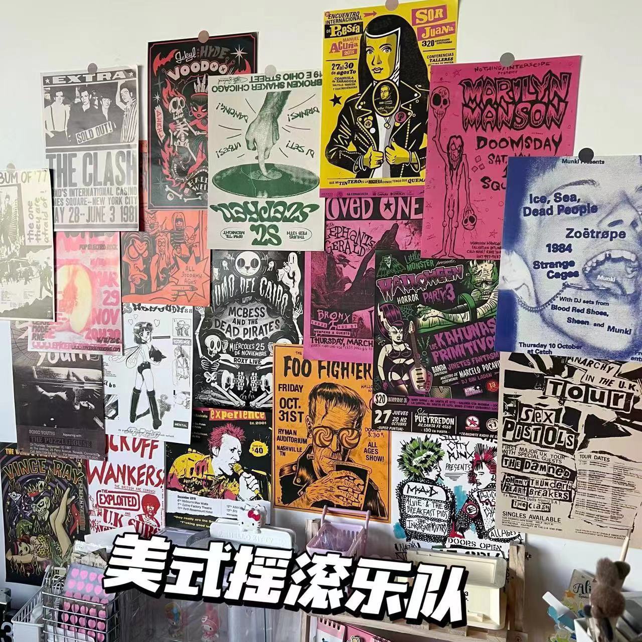 Ins 레트로 아메리칸 록 포스터 학생 고 가치 방 기숙사 벽 배경 장식 데칼 사진 벽스토어 가기
