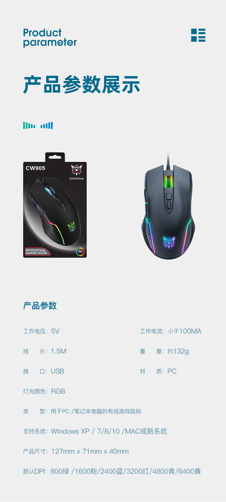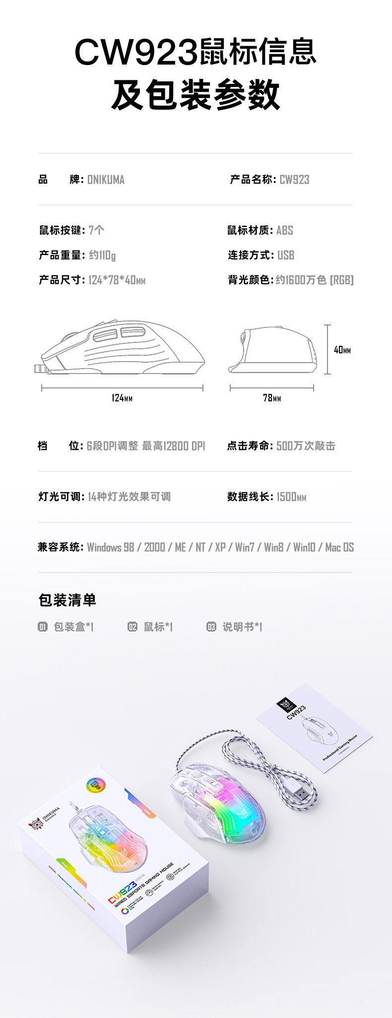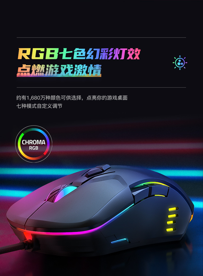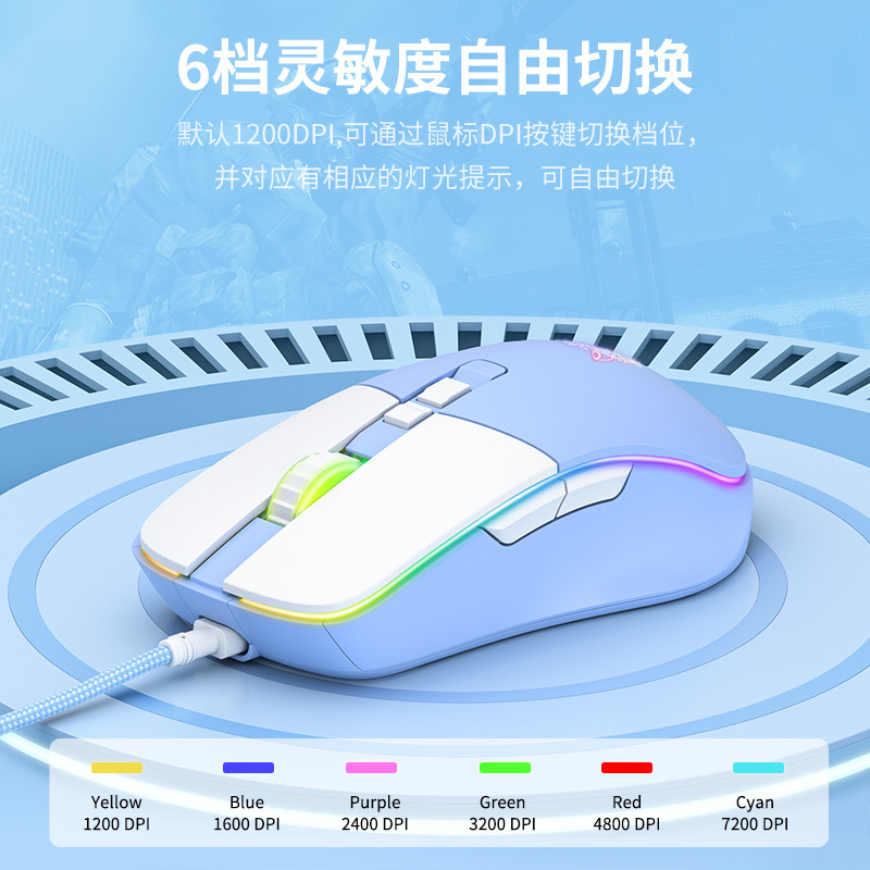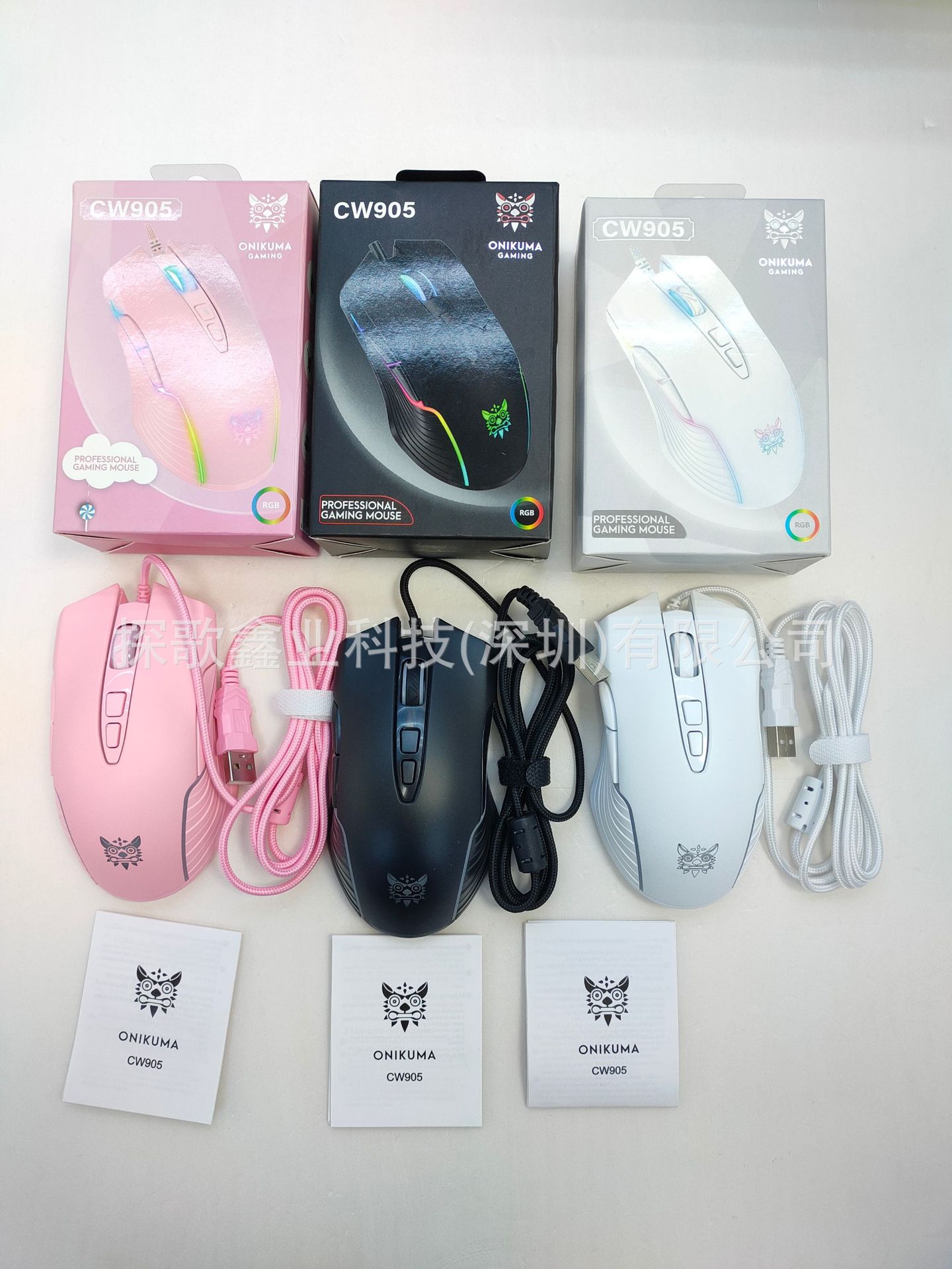 국경 간 폭발 CW905 빛나는 기계 마우스 컴퓨터 게임 광학 다채로운 유선 닭 먹는 전자 경쟁 RGB 마우스