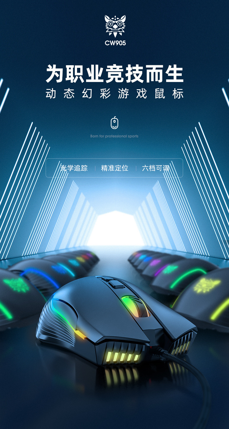 국경 간 폭발 CW905 빛나는 기계 마우스 컴퓨터 게임 광학 다채로운 유선 닭 먹는 전자 경쟁 RGB 마우스스토어 가기