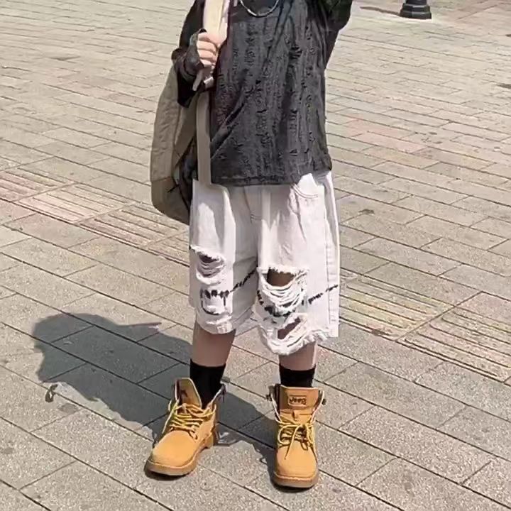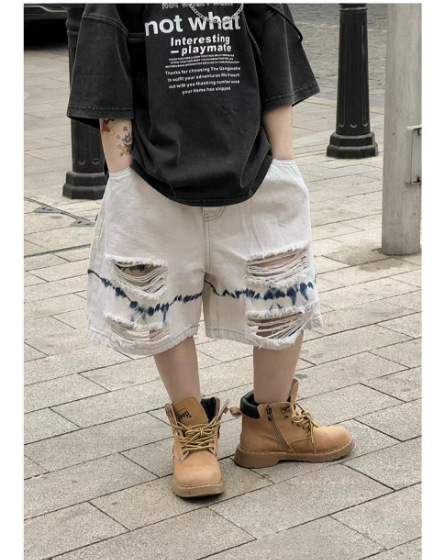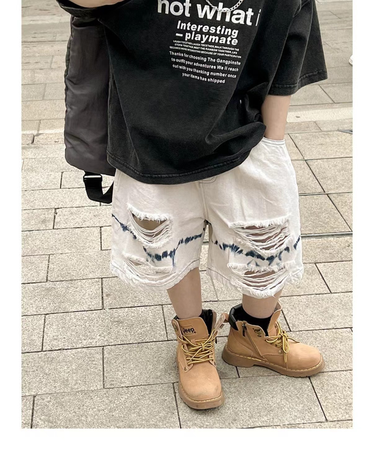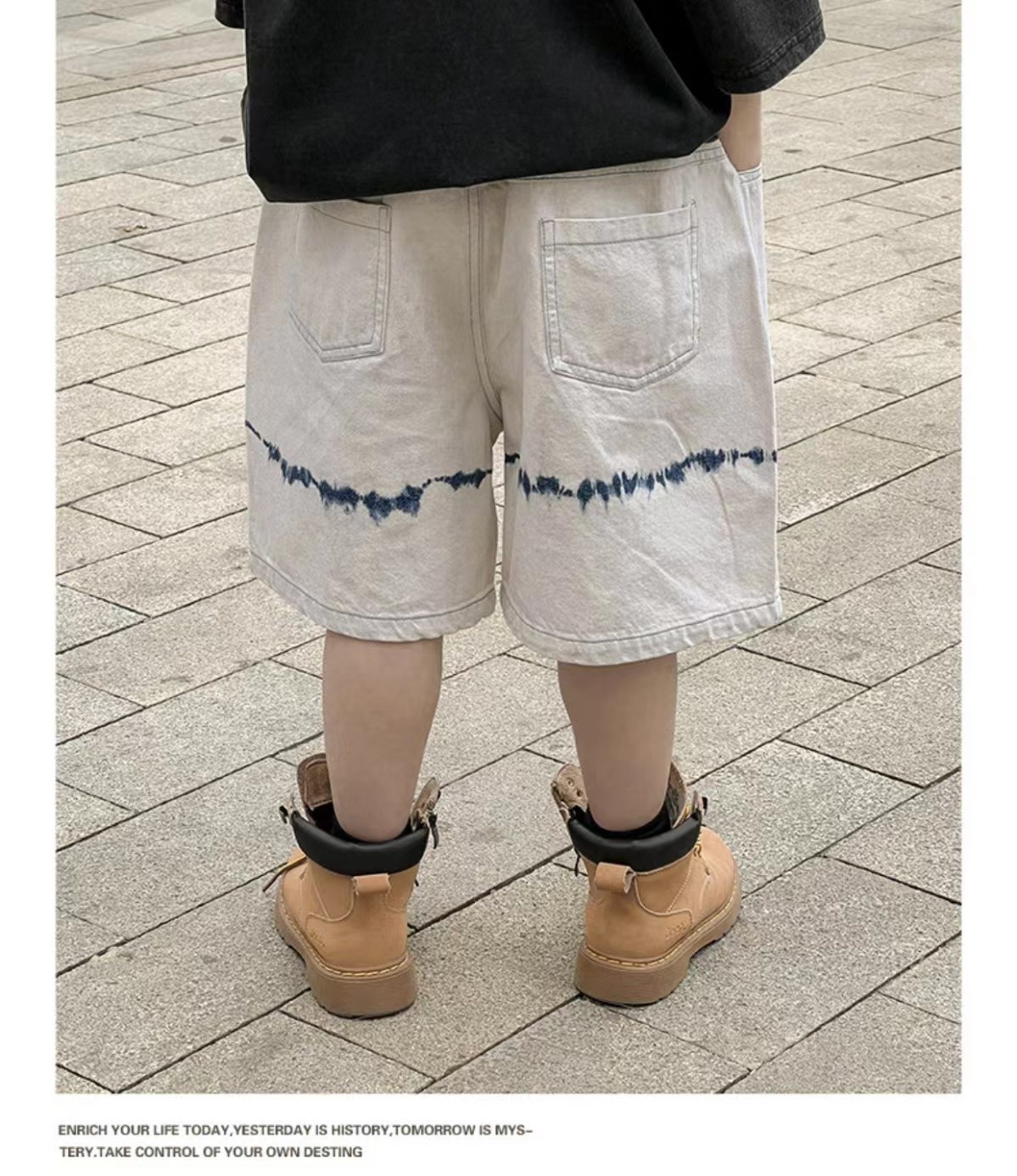 남학생 여름 반바지 한국식 어린이 스플래시 잉크 바지 일본식 트렌디 한 데님 바지 절반 길이 바지 얇고 잘 생긴 바지스토어 가기