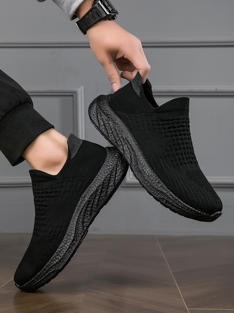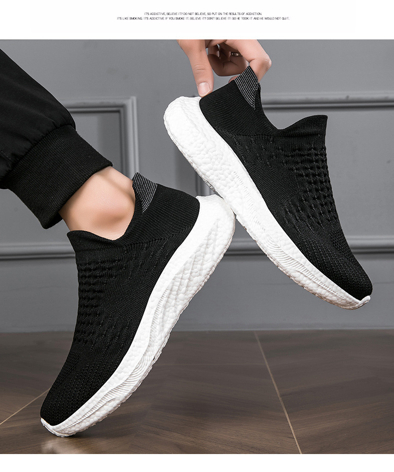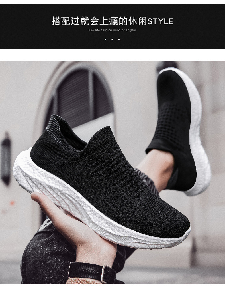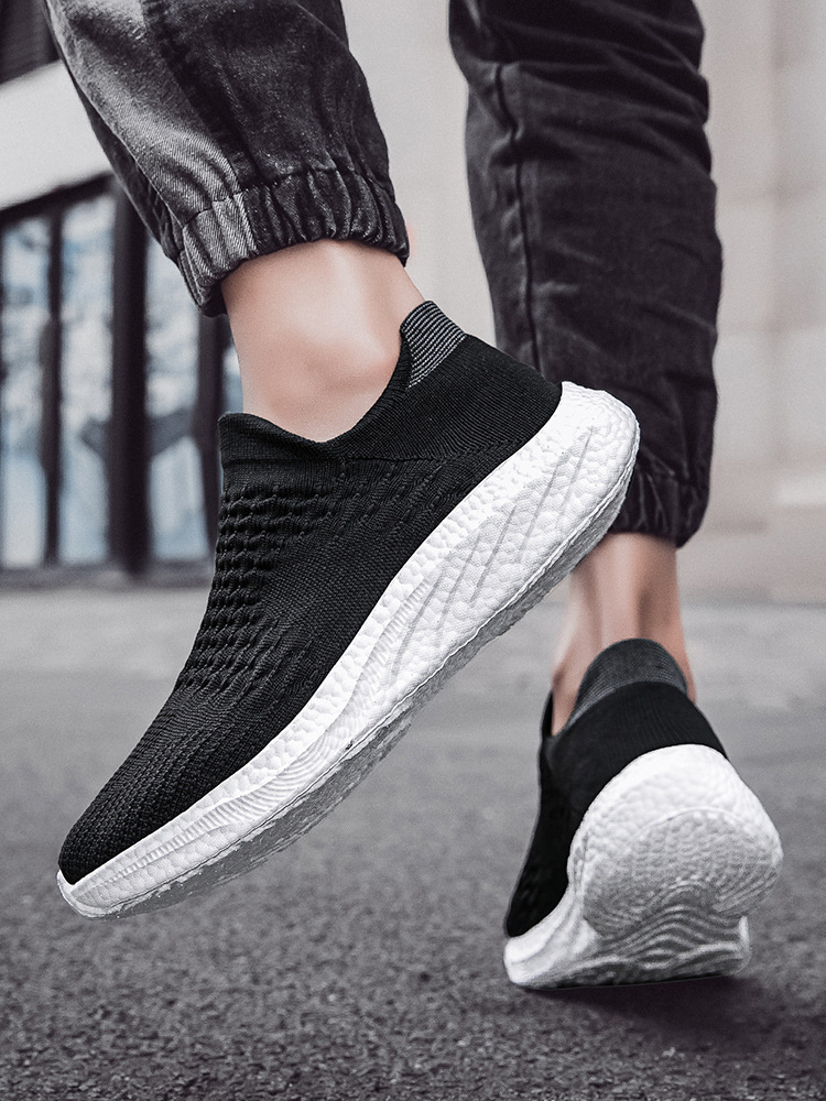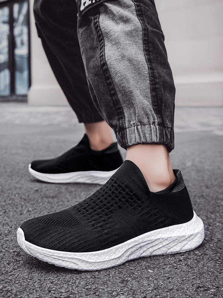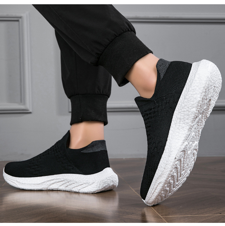 새로운 크로스 보더 소프트 솔 양말 신발 미끄럼 방지 대형 신발 플라이 짠 남성 신발 팝콘 애호가 운동화 남성 도매