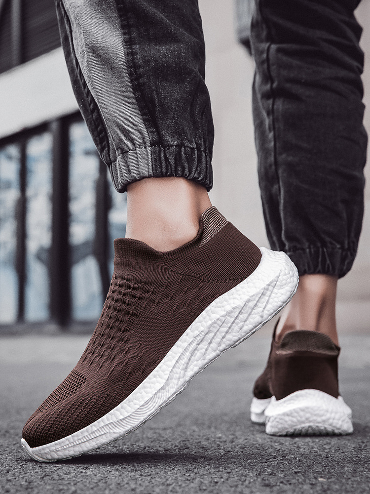 새로운 크로스 보더 소프트 솔 양말 신발 미끄럼 방지 대형 신발 플라이 짠 남성 신발 팝콘 애호가 운동화 남성 도매스토어 가기