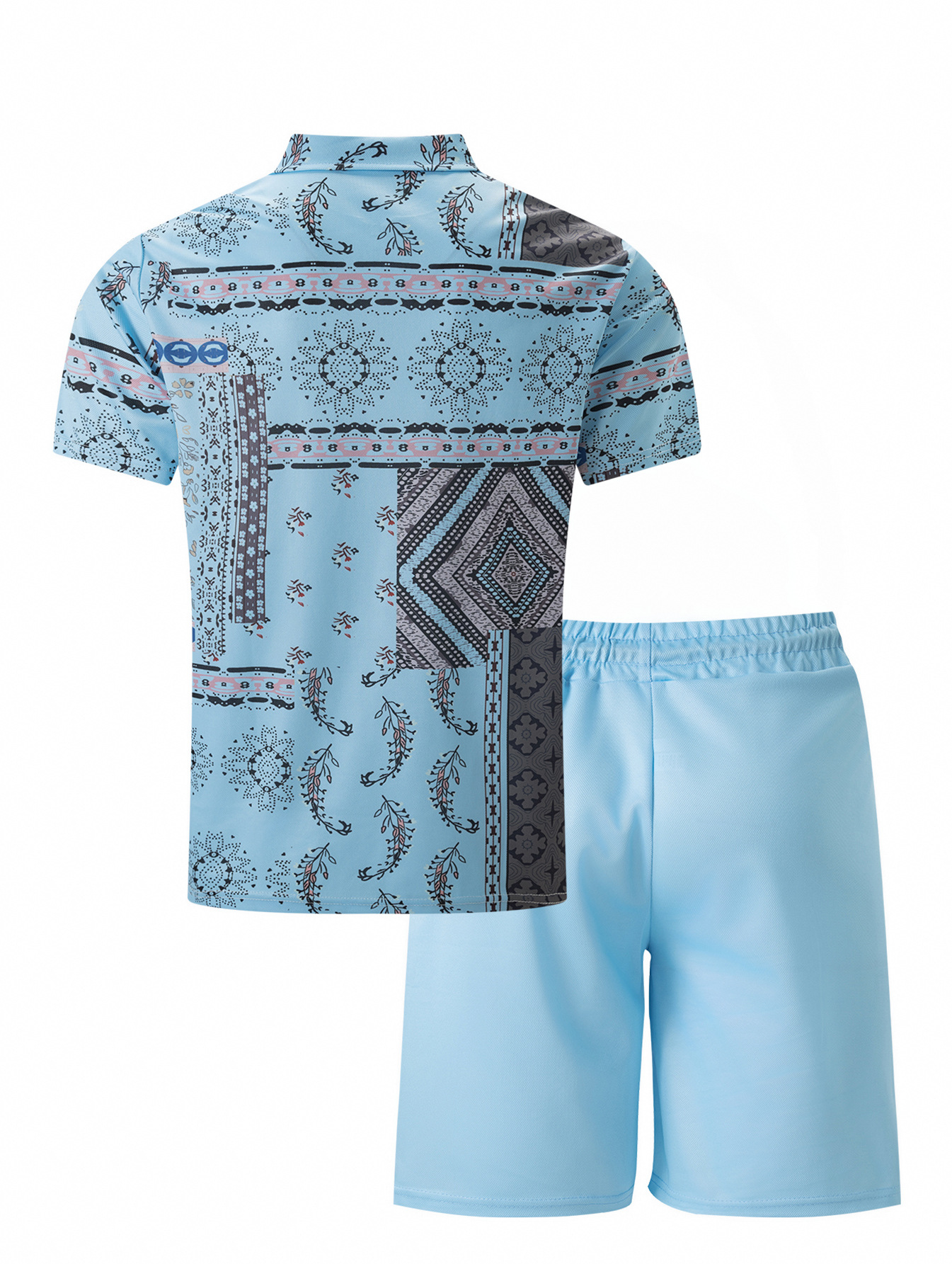 2024 년 여름 국경 대외 무역 새로운 유럽과 미국 아마존 짧은 소매 반바지 투피스 스포츠 레저 남성 세트